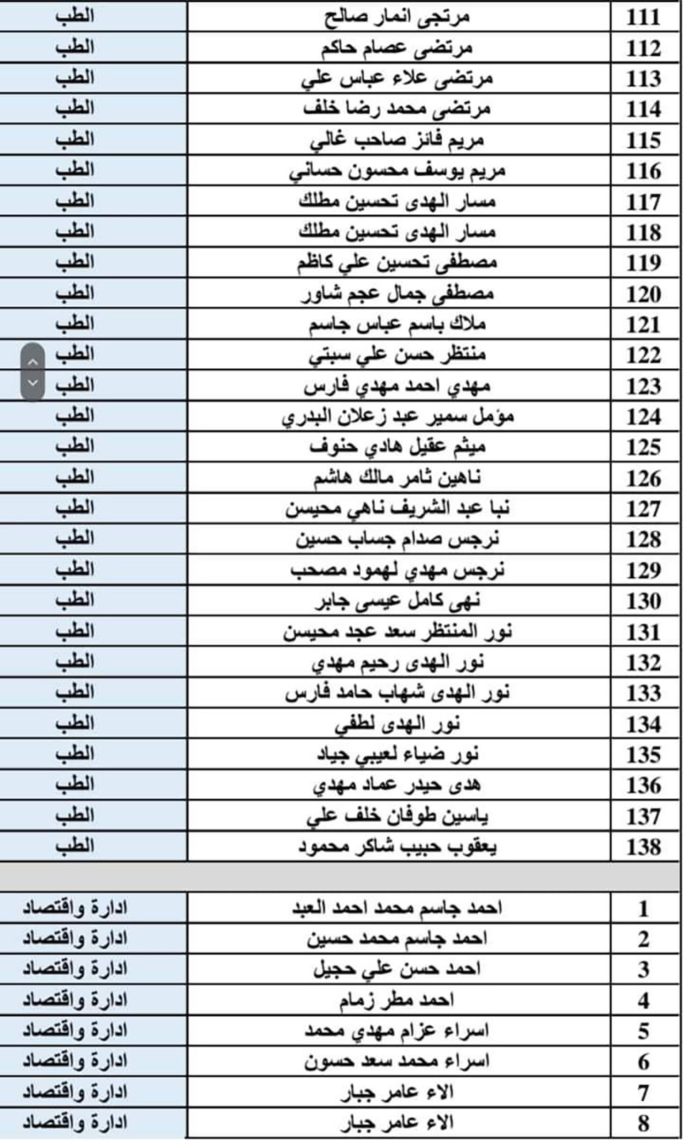 يتعين على الطلبة المدرجة أسماؤهم في القوائم أدناه مراجعة قسم الشؤون القانونية في جامعة وارث الأنبياء (عليه السلام) خلال مدة خمسة أيام من تاريخ الإعلان.