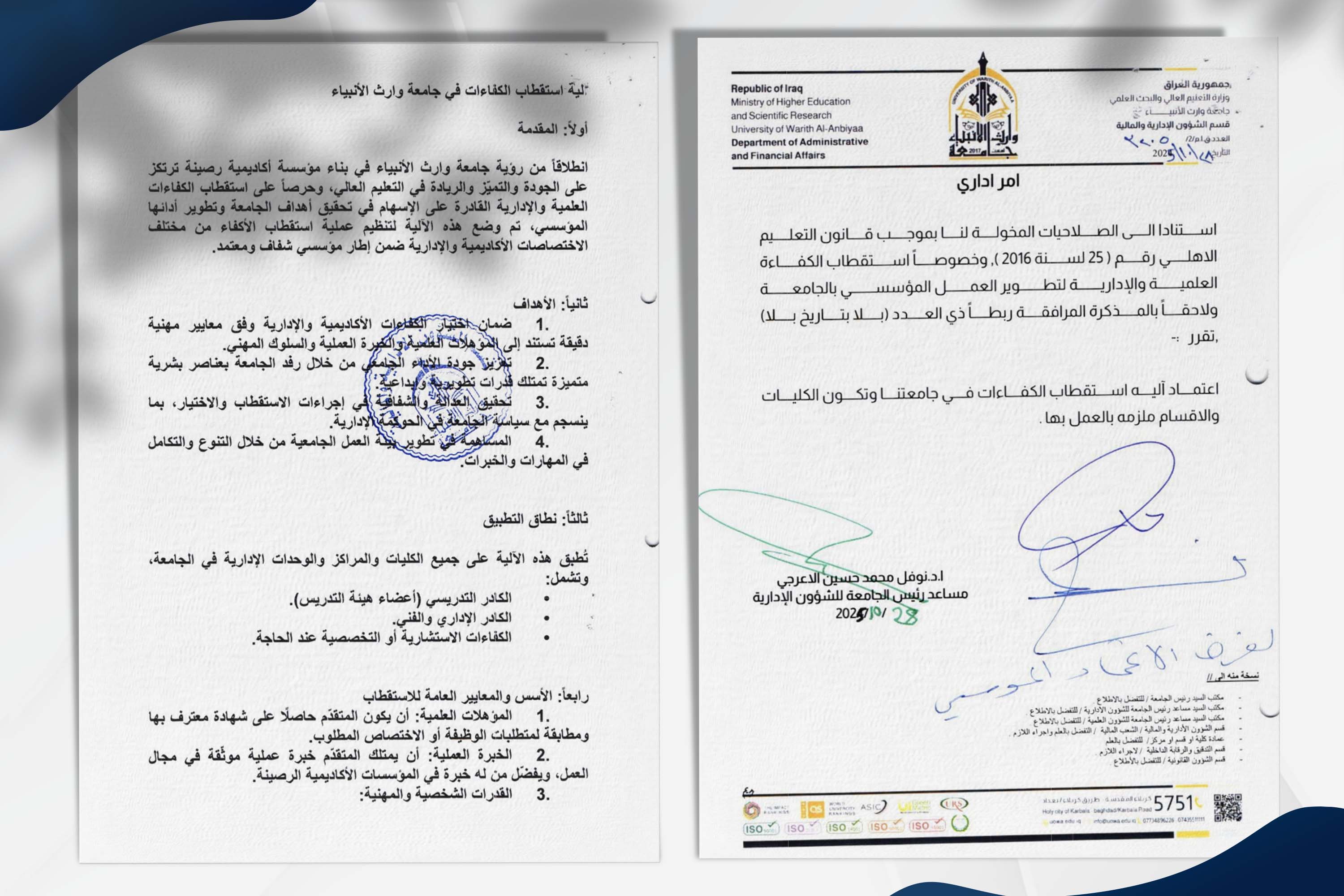 استقطاب الكفاءات في جامعة وارث الأنبياء