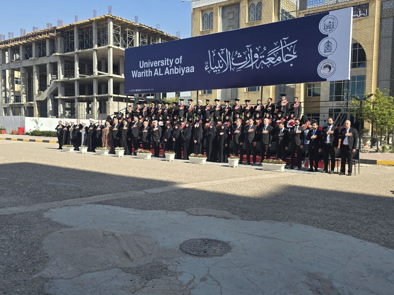 مراسم التقاط صورة التخرج لطلبة كلية العلوم الإسلامية بحضور عمادة الكلية والكادرين التدريسي والإداري