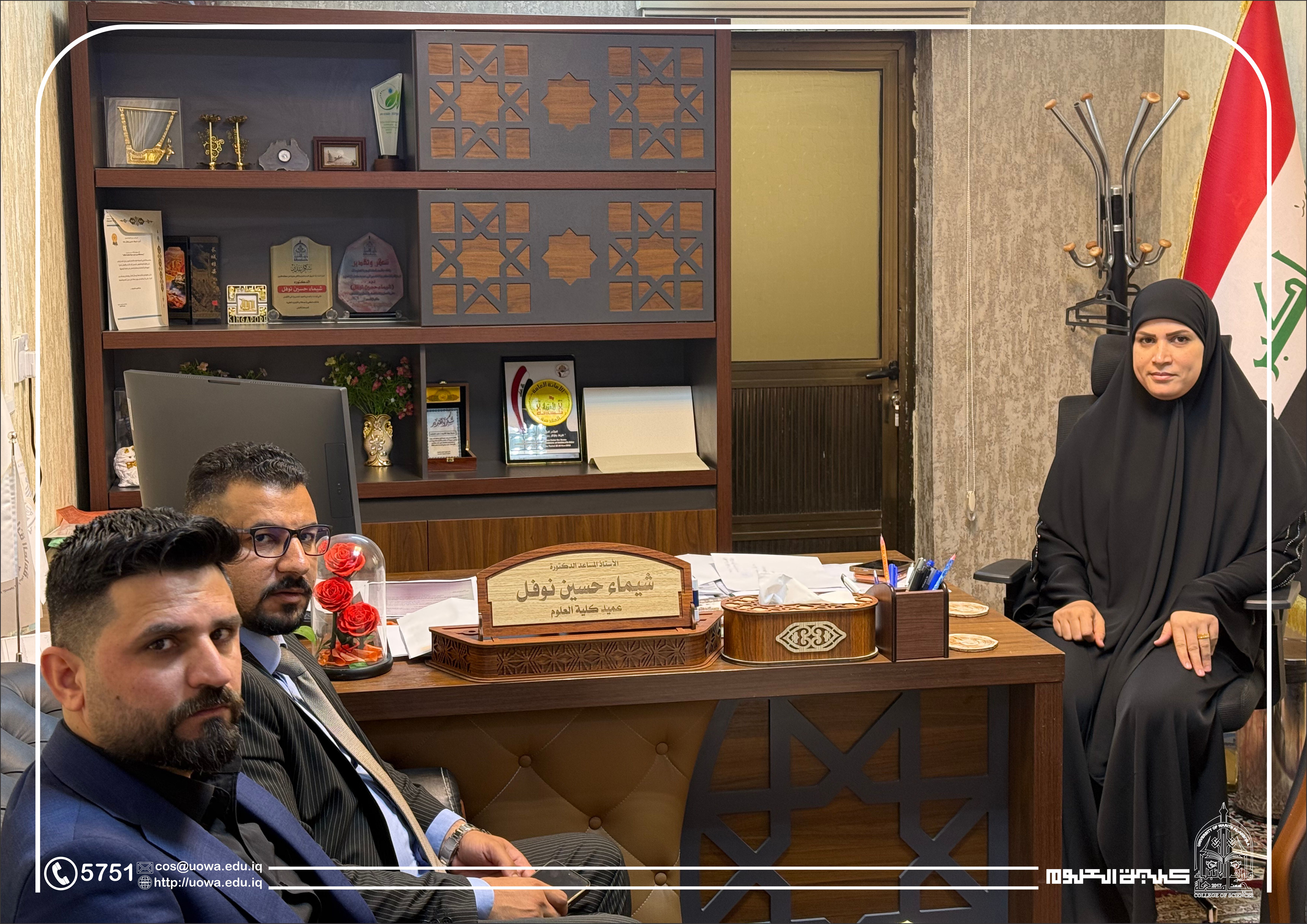 استقبلت الأستاذ المساعد الدكتور شيماء حسين نوفل، عميد كلية العلوم في جامعة وارث الأنبياء (عليه السلام)، اللجنة العلمية الموفدة من جامعة كربلاء/ كلية العلوم الطبية، في إطار تفعيل مهام الإشراف المشترك على سير الامتحانات التقويمية المبرمة بين الجانبين، وذلك تجسيداً لمبدأ التكامل الأكاديمي وتعضيداً لأطر التعاون بين المؤسسات التعليمية في المحافظة.