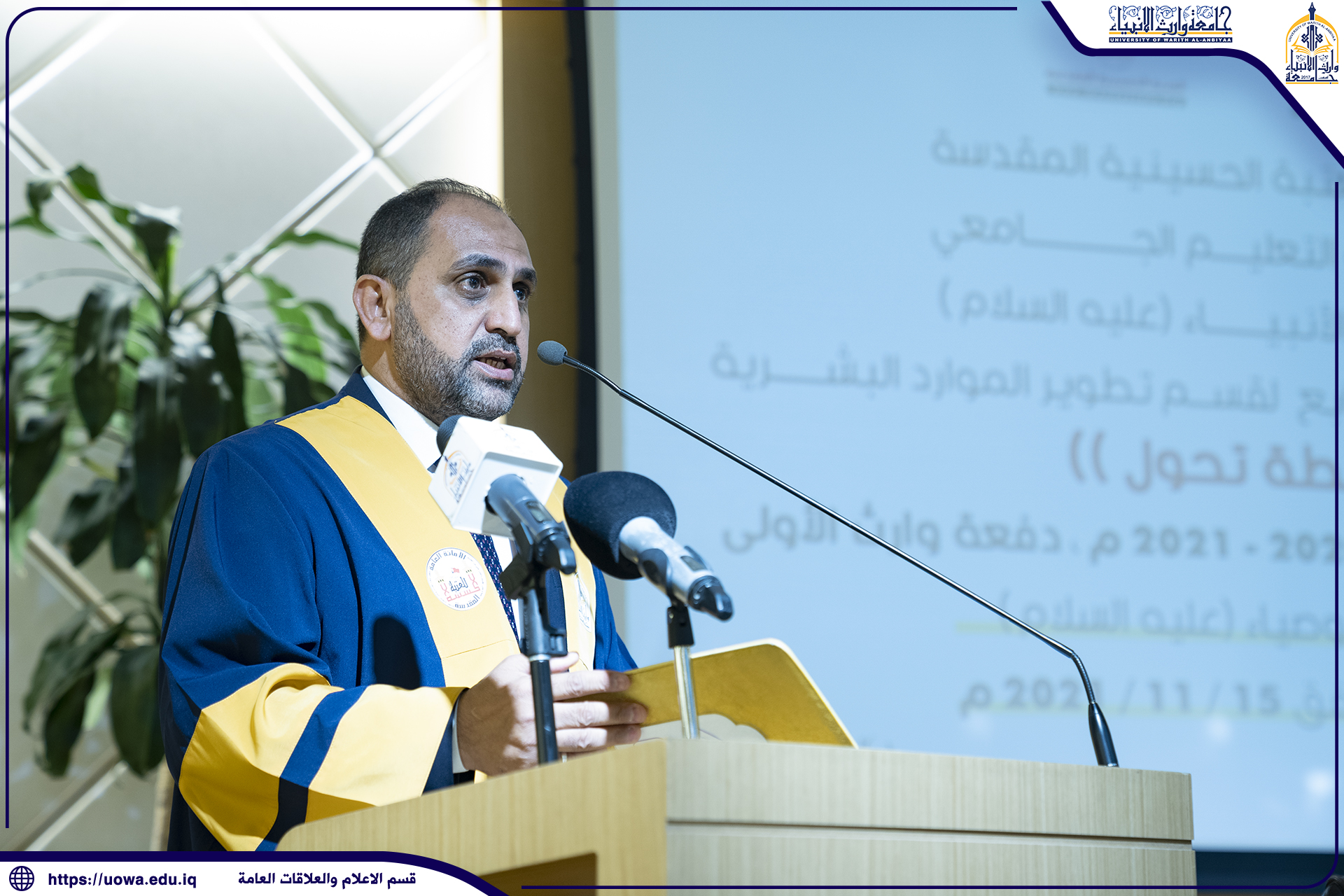 وجرى الحفل البهيج في قاعة سيد الأوصياء بالصحن الحسيني الشريف، بحضور السيد رئيس الجامعة الاستاذ الدكتور طالب حسن موسى والسادة مساعدي رئيس الجامعة والسادة عمداء الكليات واعضاء هيئة التدريس واولياء امور الطلبة .