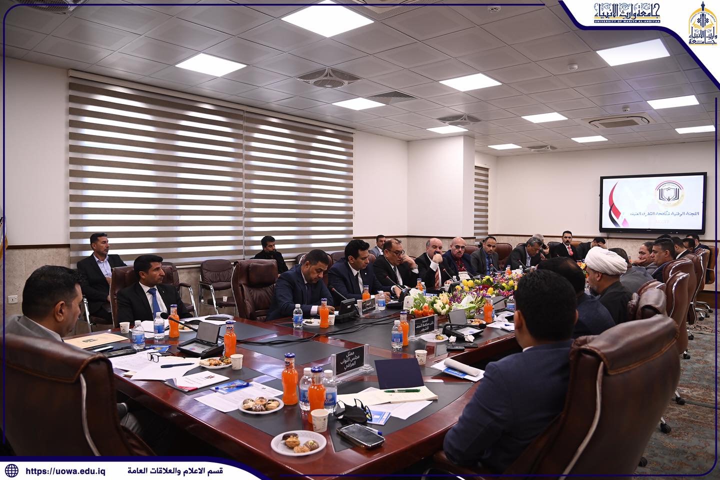 احتضنت جامعة وارث الأنبياء(عليه السلام) الاجتماع الثالث للجنة الوطنية المشكلة من أمانة مجلس الوزراء بحضور السادة نواب محافظي المحافظات العراقية، ورئيس اللجنة التحضيرية في العتبة الحسينية المقدسة سماحة الشيخ علي القرعاوي ، وممثلين عن مستشارية الامن الوطني ومجلس النواب العراقي، لمناقشة التحضيرات الجارية لعقد (المؤتمر الوطني الأول للحد من التطرف والإرهاب) الذي ستقيمه الأمانة العامة للعتبة الحسينية المقدسة بتاريخ22 من شهر شباط القادم.