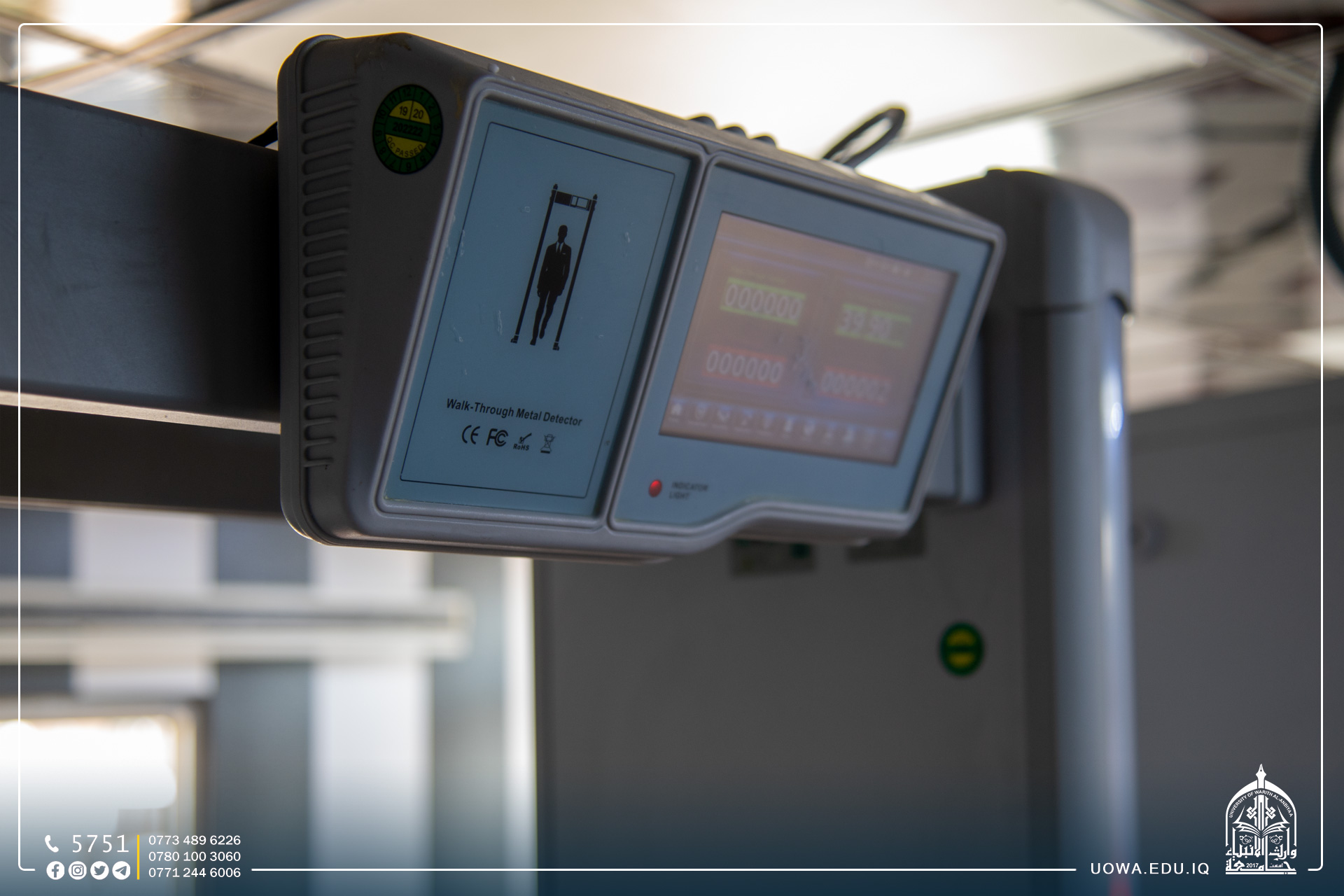 حرصاً على سلامة طلبتها الاعزاء، ادخلت رئاسة جامعة وارث الانبياء(عليه السلام) منظومات دخول متطورة داخل مقصورات دخول الطلبة وبمواصفات عالية، وجاء تجهيز هذه المنظومات بجهود قسم المتابعة وقسم ديوان الجامعة، إذ تتميز هذه المنظومات بتسجيلها لاعداد الاشخاص في حال الدخول والخروج، ومقياس لدرجة الحرارة، وكاميرا حرارية، وحساسات لكشف المعادن، وتعمل هذه المنظومات على تقليل الزخم على بوابات الدخول والسرعة في حركة الطلبة داخل المقصورة .