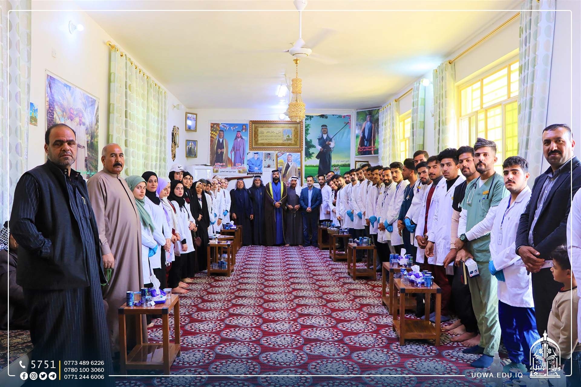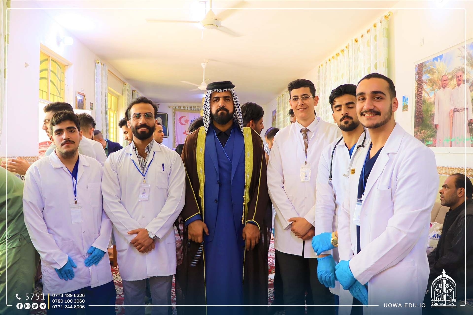 ضمن مبادرة "بركات الانوار المحمدية" التي اطلقتها هيئة الصحة والتعليم الجامعي في العتبة الحسينية المقدسة بمناسبة الولادات الشعبانية المباركة، اقامت كلية الطب بالتعاون مع كلية التمريض في جامعة وارث الانبياء(عليه السلام)، جولة ميدانية للقرى في اطراف محافظة كربلاء المقدسة بإشراف عمادة كلية الطب لتقديم الدعم الطبي لساكني هذه القرى و الاستشارات الطبية لهم.