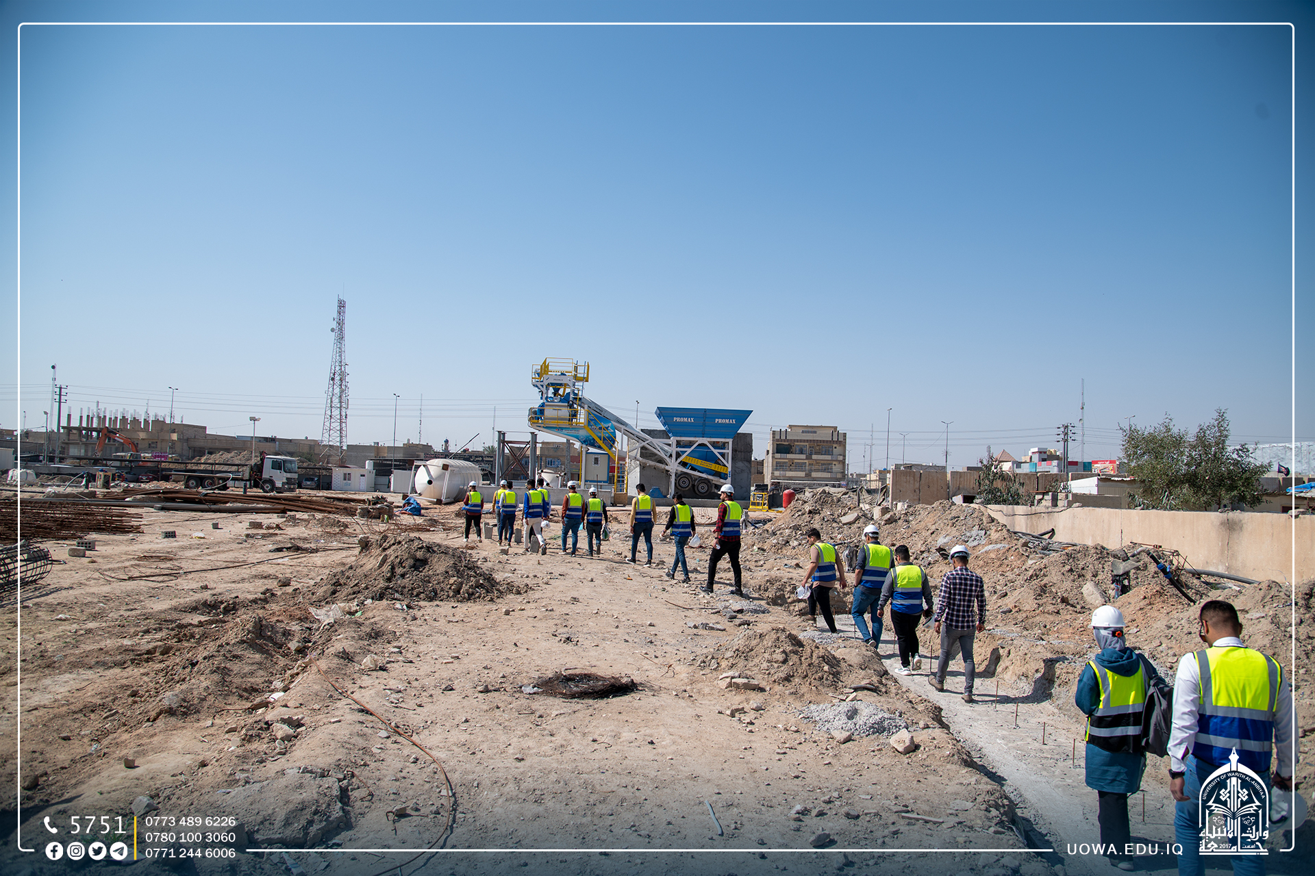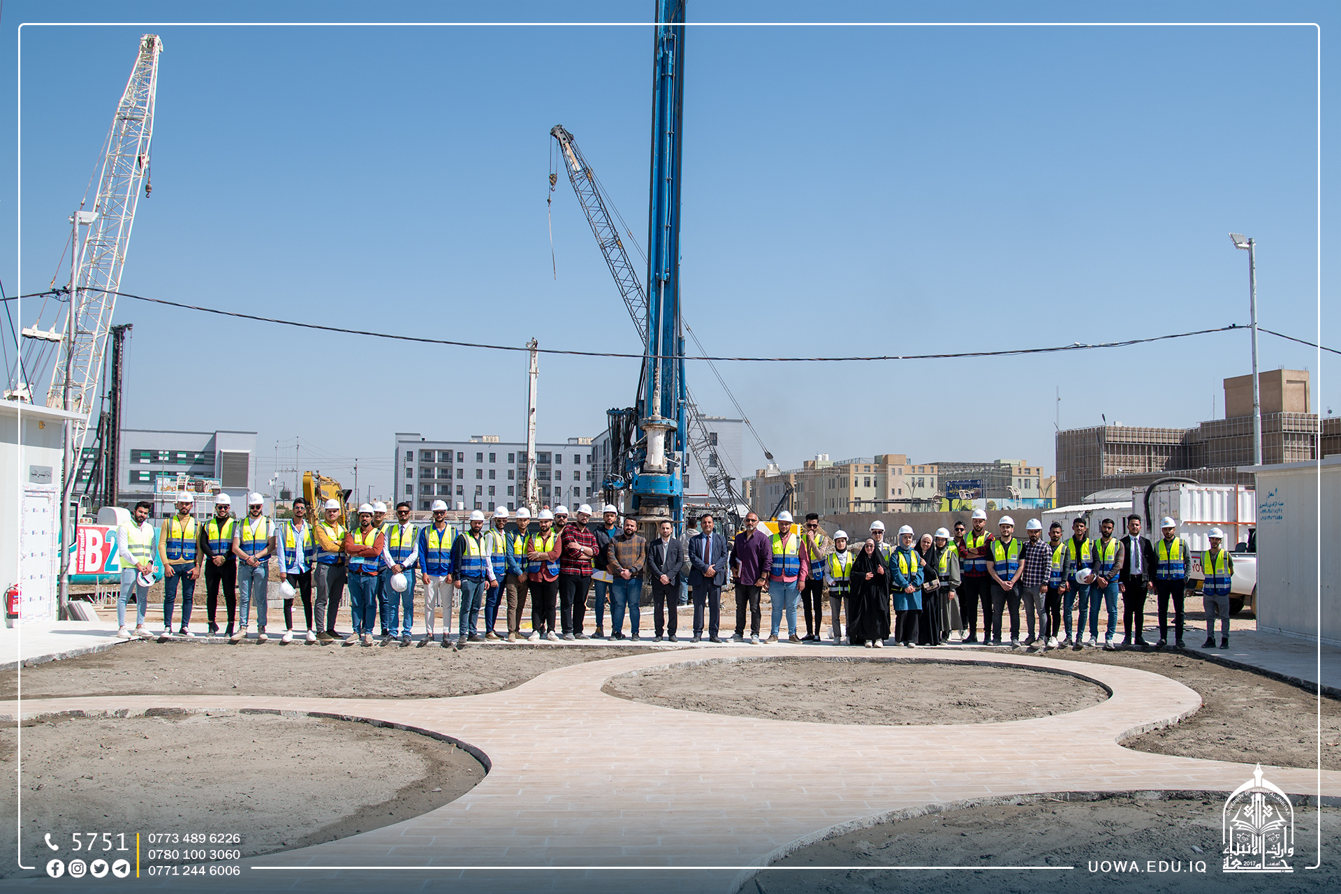 بالصور... زيارة علمية لطلبة كلية الهندسة / قسم الهندسة المدنية الى مشروع توسعة مؤسسة وارث لعلاج الاورام السرطانية التابعة للعتبة الحسينية المقدسة من اجل الاطلاع على مراحل وضع الركائز الاساسية للبنايات.
