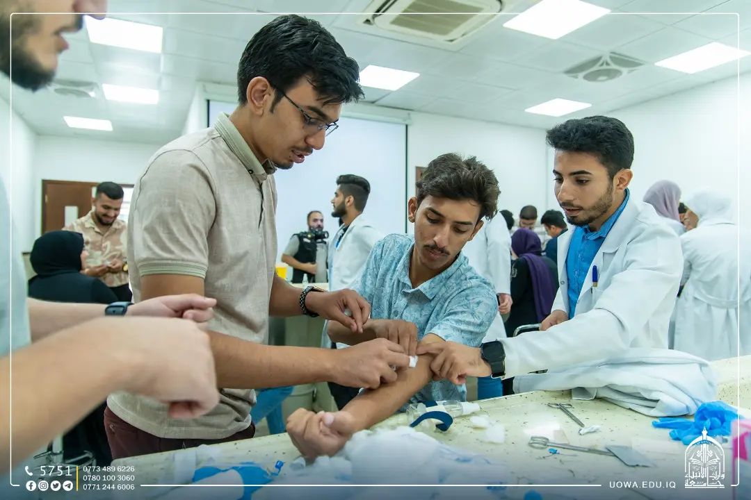 التقطت عدسة اعلام جامعة وارث الأنبياء (عليه السلام) صورا لحماس طلبة كلية الطب ضمن اليوم الأخير من (الكورس التدريبي المكثف الأول) وذلك لإتقان المهارات التدريبية التي تعلموها خلال الايام السابقة.
