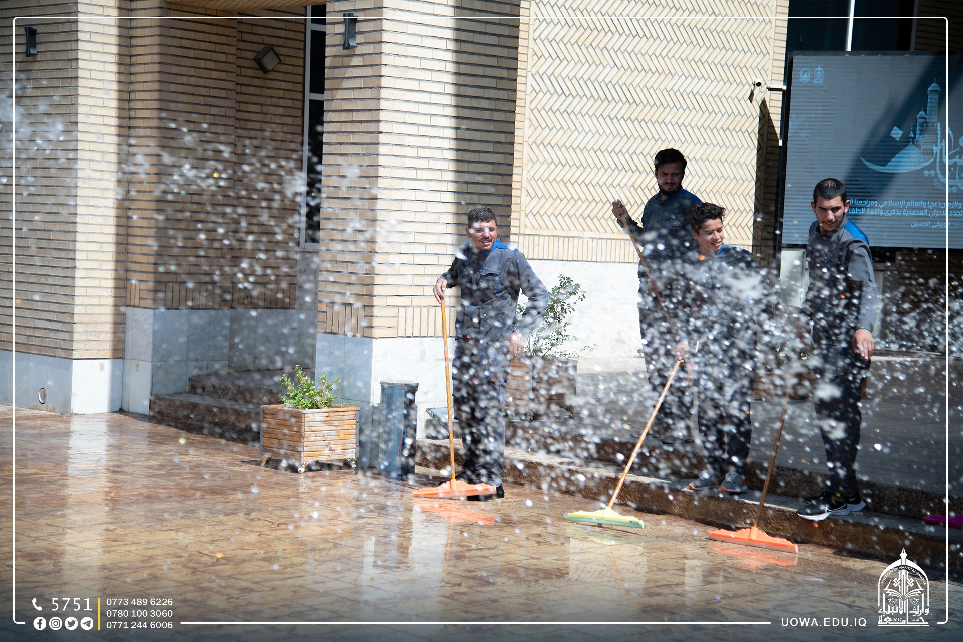 قسم رعاية الحرم في العتبة الحسينية المقدسة بكادره المتخصص يباشر بأعمال تهيئة مباني الجامعة وادامتها ضمن الاستعدادت للعام الدراسي الجديد.