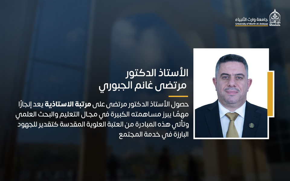حصول الأستاذ الدكتور مرتضى الجبوري على مرتبة الاستاذية يعد إنجازًا مهمًا يبرز مساهمته الكبيرة في مجال التعليم والبحث العلمي. وتأتي هذه المبادرة من العتبة العلوية المقدسة كتقدير للجهود البارزة في خدمة المجتمع وتطوير المعرفة في العراق.