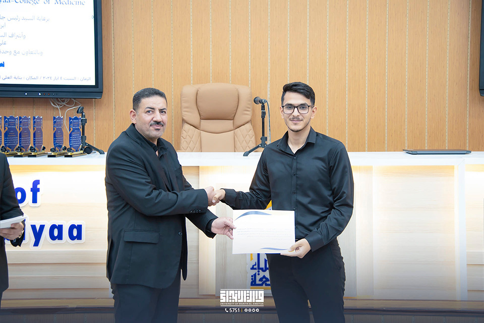 وخلال حفل التتويج، أكد الأستاذ الدكتور إبراهيم الحياوي على أهمية اهتمام الطلبة بتحصيل العلم باعتبارهم أطباء المستقبل الذين يتحملون مسؤولية كبيرة أمام المجتمع، إلى جانب أهمية الجوانب القيادية والمهنية للطبيب.