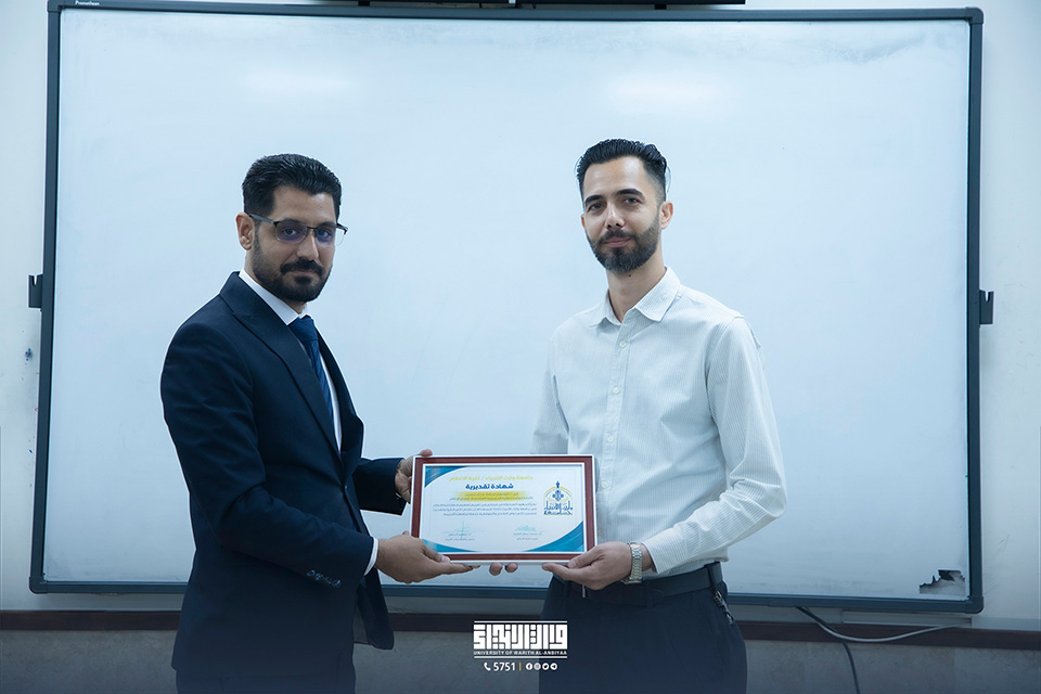 عمادة كلية الإعلام في جامعة وارث الانبياء(عليه السلام) تكرم عدد من طلبة الكلية لجهودهم المبذولة في المسابقة التي اطلقها السيد رئيس الجامعة الاستاذ الدكتور ابراهيم الحياوي ، والتي تمثلت " بأجمل تصميم لشعار الكلية ،وتصميم بروشور خاص بكلية الإعلام ، وفيديو دعائي احترافي".
