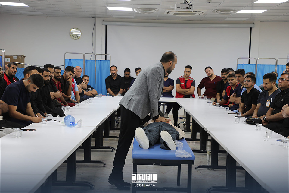 نظمت كلية الطب في جامعة وارث الأنبياء (عليه السلام) بالتعاون مع "المركز الإقليمي لطب الطوارئ" ورشة تدريبية حول الإسعافات الأولية المتقدمة (BLS) في مختبرات الكلية، بحضور رئيس الجامعة الأستاذ الدكتور إبراهيم الحياوي وعميد كلية الطب الأستاذ الدكتور علي عبد سعدون الغزي ومدير مركز طب الطوارئ الدكتور فاضل عكله الربيعي.