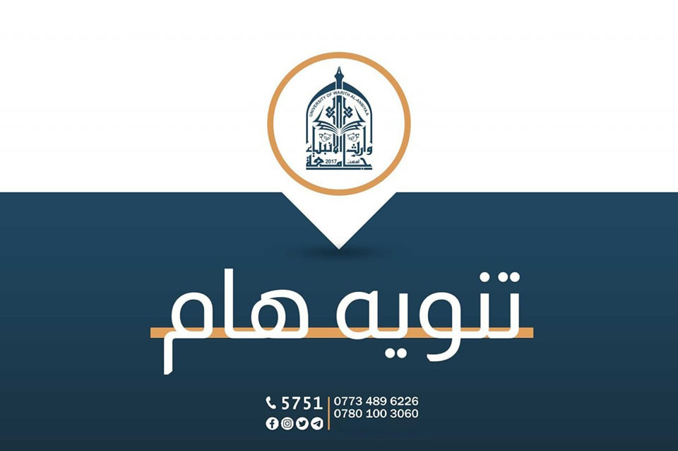 تعلن جامعة وراث الانبياء(عليه السلام) عن فتح الحجز للاختبار الوطني العراقي للغة الانكليزية الموحد.