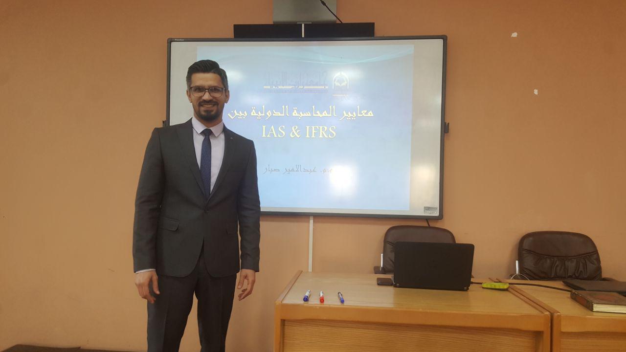 أقام قسم ادارة الاعمال في كلية الادارة والاقتصاد حلقة نقاشية بعنوان (معايير المحاسبة الدولية بين IAS&IFRS) قام بألقائها الاستاذ (م.م عبدالامير صبار) يوم الاثنين المصادف 7\1\2019وقد حضر الجلسة كل من سيادة عميد الكلية أ.د.عامر العطوي و رئيس قسم المحاسبة م.د.فهد الشمري و رئيسة قسم ادارة الاعمال د. نضال المالكي والسادة التدريسيين وقد ركزت الورشة على توضيح مفهوم المعايير الدولية وطريقة انشائها وكيفية توظيفها لخدمة الجانب التعليمي لطلبة كليتنا