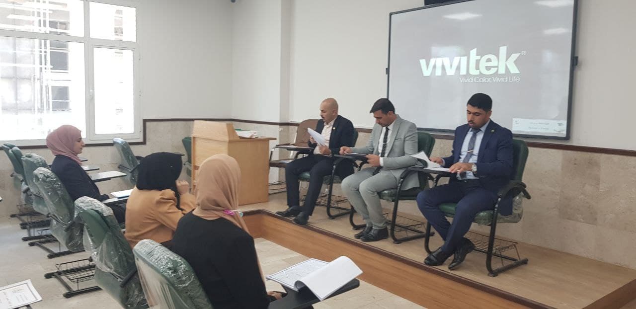 بأشراف السيد عميد كلية الادارة والاقتصاد الاستاذ الدكتور عواد الخالدي وم.د فهد مغيمش الشمري رئيس قسم ادارة الاعمال وم.د هبة الله مصطفى السيد علي رئيس قسم المحاسبة، جرت مناقشة طلبة المرحلة الرابعة لكلية الادارة والاقتصاد ولقسميها العلميين (المحاسبة - ادارة الاعمال) وللدراسيتين الصباحي والمسائي ابتداءً من يوم الثلاثاء المصادف 29/6/2021