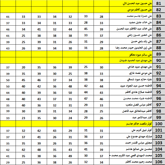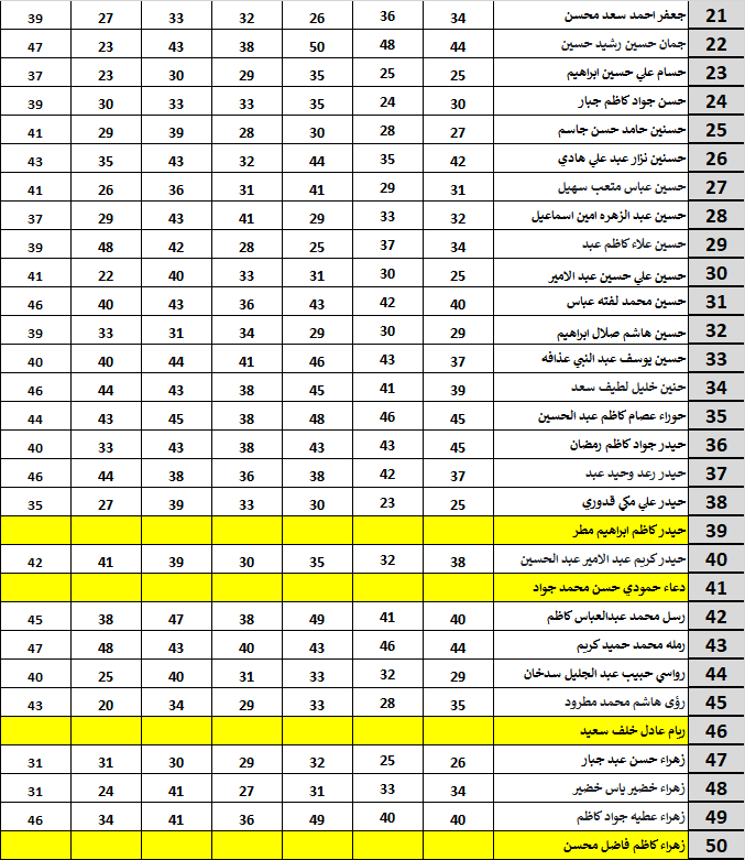 درجات السعي السنوي لطلبة قسم المحاسبة / المرحلة الثانية صباحي