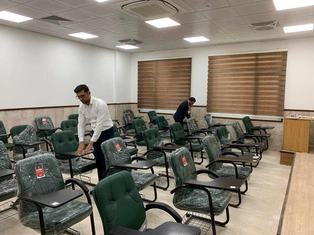 قسم ادارة الاعمال يهيئ قاعات الامتحانات النهائية الحضورية للعام الدراسي 2021-2022 الكورس الثاني في بناية العلى