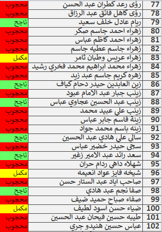 نتائج امتحانات الكورس الاول قسم المحاسبة المرحلة الاولى للدراسة الصباحية والمسائية