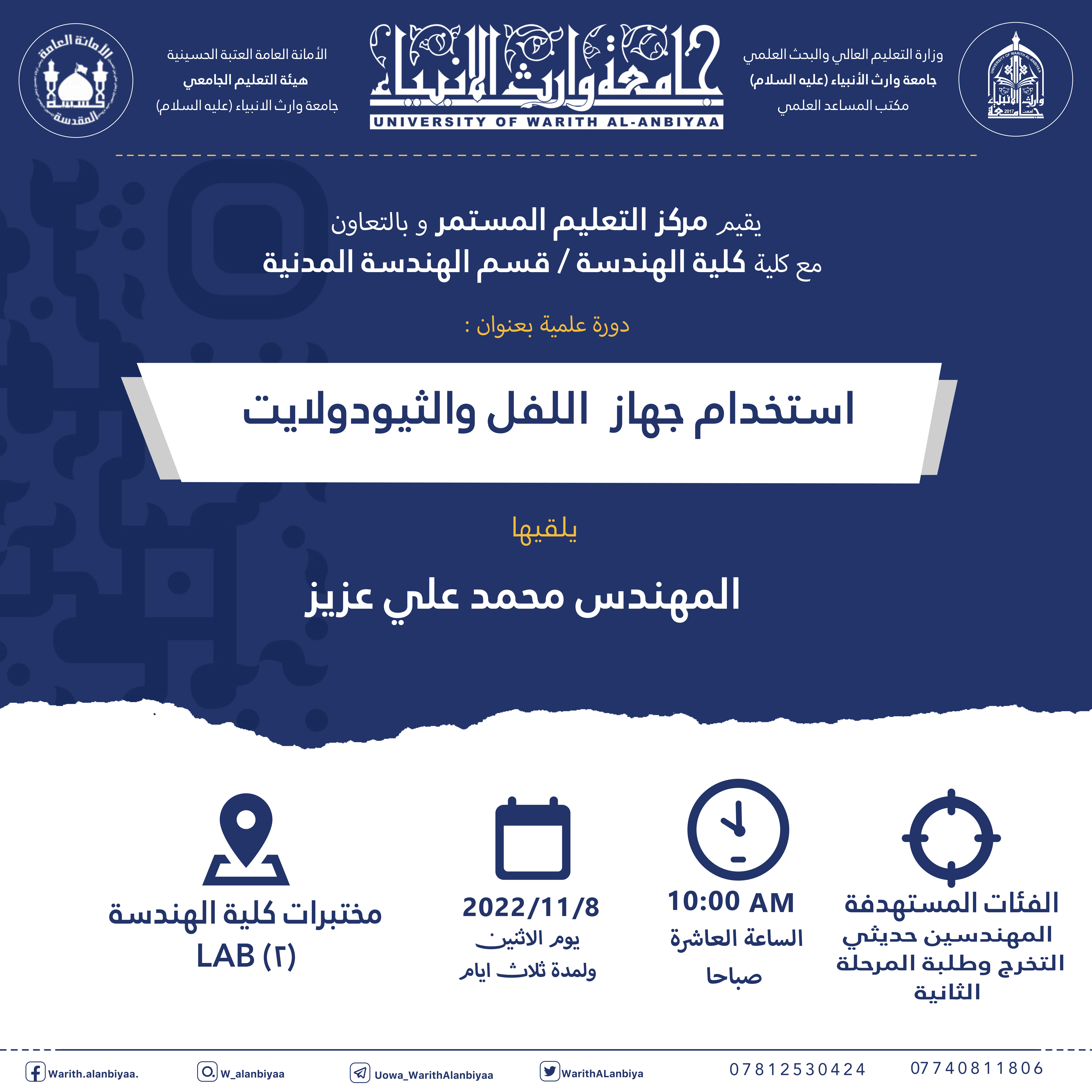 اعلان اقامة دورة في استخدام جهاز اللفل والثيودولايت