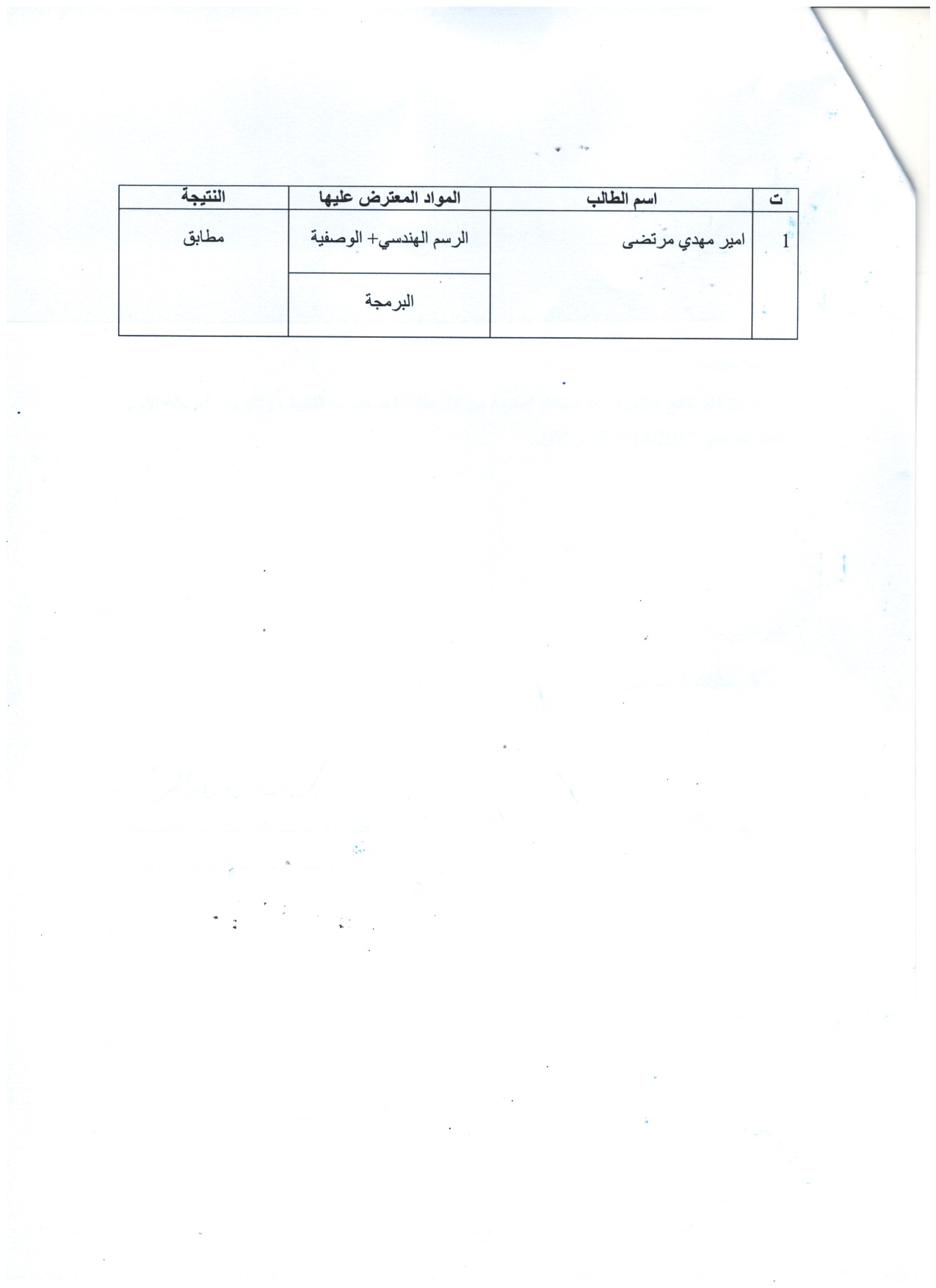 الى طلبة قسم الهندسة الطب الحياتي بعد تدقيق كافة الاعتراضات المقدمة كانت جميع النتائج مطابقة حسب الجدول ادناة