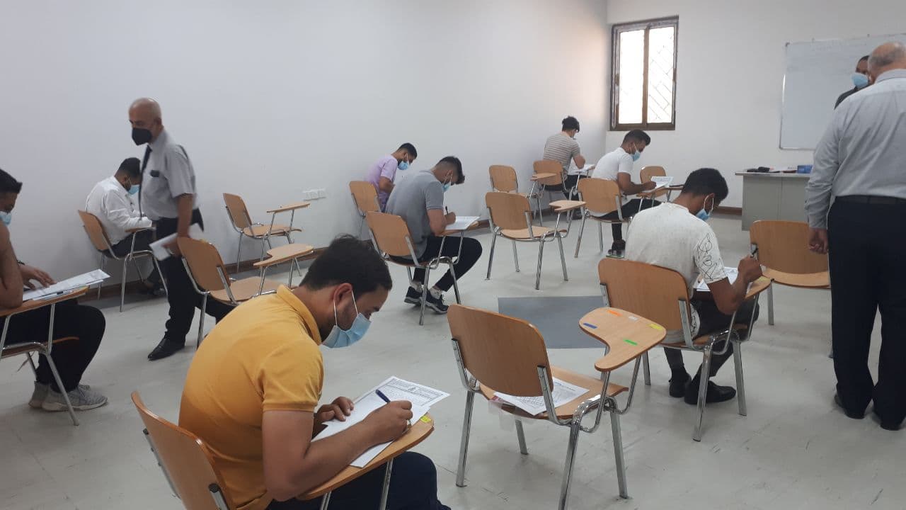 جانب من الامتحان الحضوري لطلبة المرحلة الرابعة - قسم الهندسة المدنية يوم الثلاثاء المصادف 28/7/2021 وسط اجراءات وقائية مشددة.