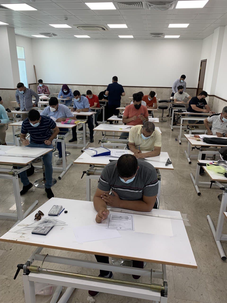 جانب من امتحان الحضوري لمادة الرسم الهندسي لطلبة المرحلة الأولى - قسم الهندسة المدنية يوم الاثنين المصادف 26/7/2021.