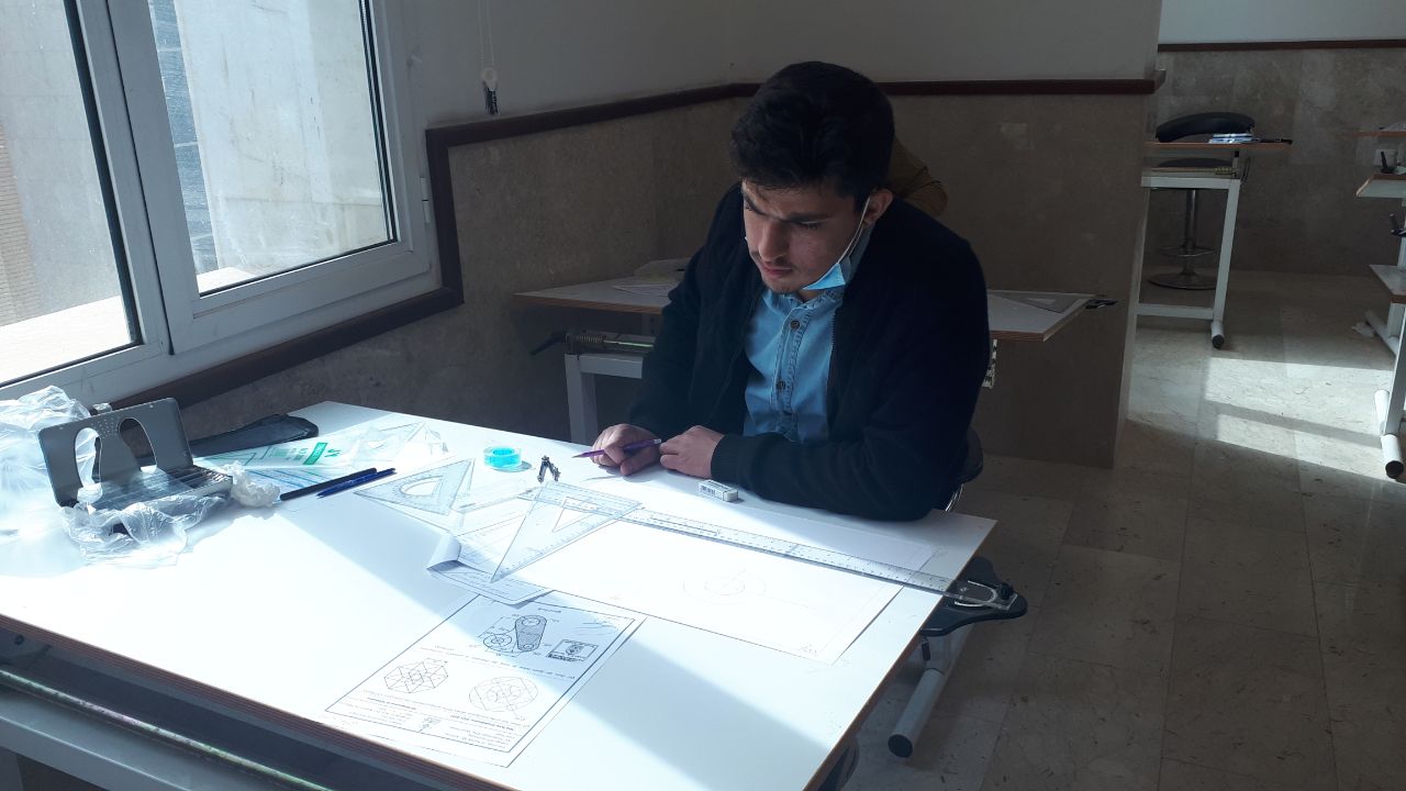 جانب من الامتحانات الحضورية لقسم هندسة تقنيات التكييف والتبريد لماده الرسم الهندسي المرحلة الاولى
