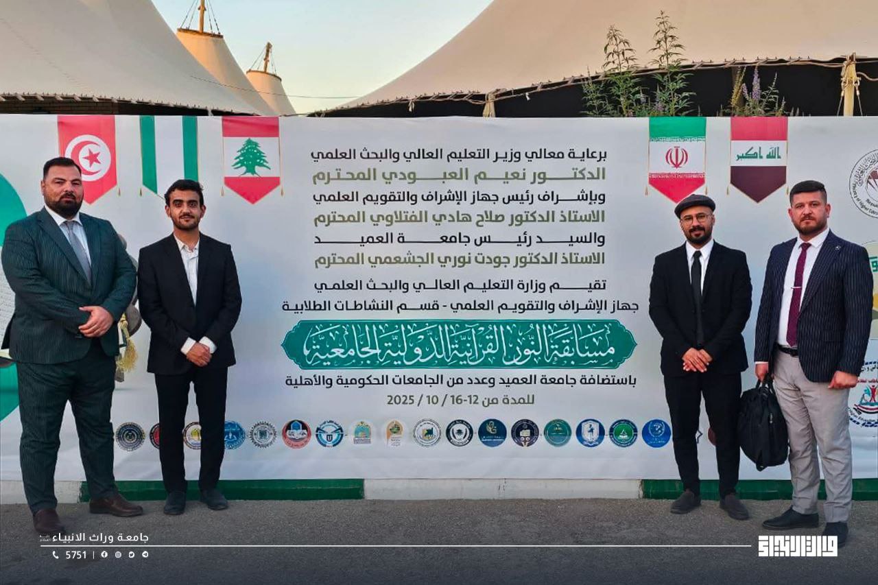 شاركت كلية العلوم الإسلامية في جامعة وارث الأنبياء (عليه السلام) في فعاليات مسابقة النور القرآنية الدولية الجامعية التي نظّمتها وزارة التعليم العالي والبحث العلمي، بمشاركة (53) جامعة عراقية و(6) جامعات أجنبية من مختلف دول العالم، والتي أُقيمت في جامعة العميد.