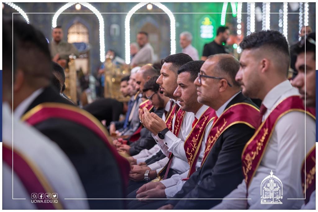 حيث جرى الحفل البهيج في الصحن الحسيني الشريف، بحضور عميد الكلية الاستاذ المساعد الدكتور طلال الكمالي والسادة والسيدات اعضاء هيئة التدريس .