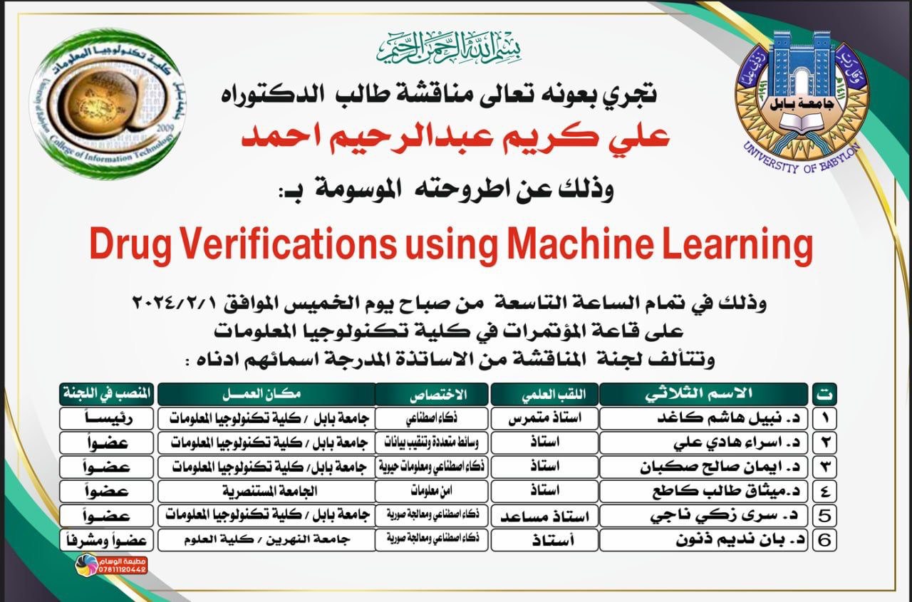 تألق ونجاح يُضاف إلى سجل الكفاح والتفوق، حيث حقق الأستاذ الفاضل علي كريم عبد الرحيم إنجازاً علمياً بارزاً. وقد تمكن السيد علي من استكمال رحلته الأكاديمية بتفوق وتميز، حيث نجح في مناقشة أطروحته لنيل شهادة الدكتوراه في جامعة بابل وحصل على درجة الامتياز. وذلك في 1 فبراير 2024.