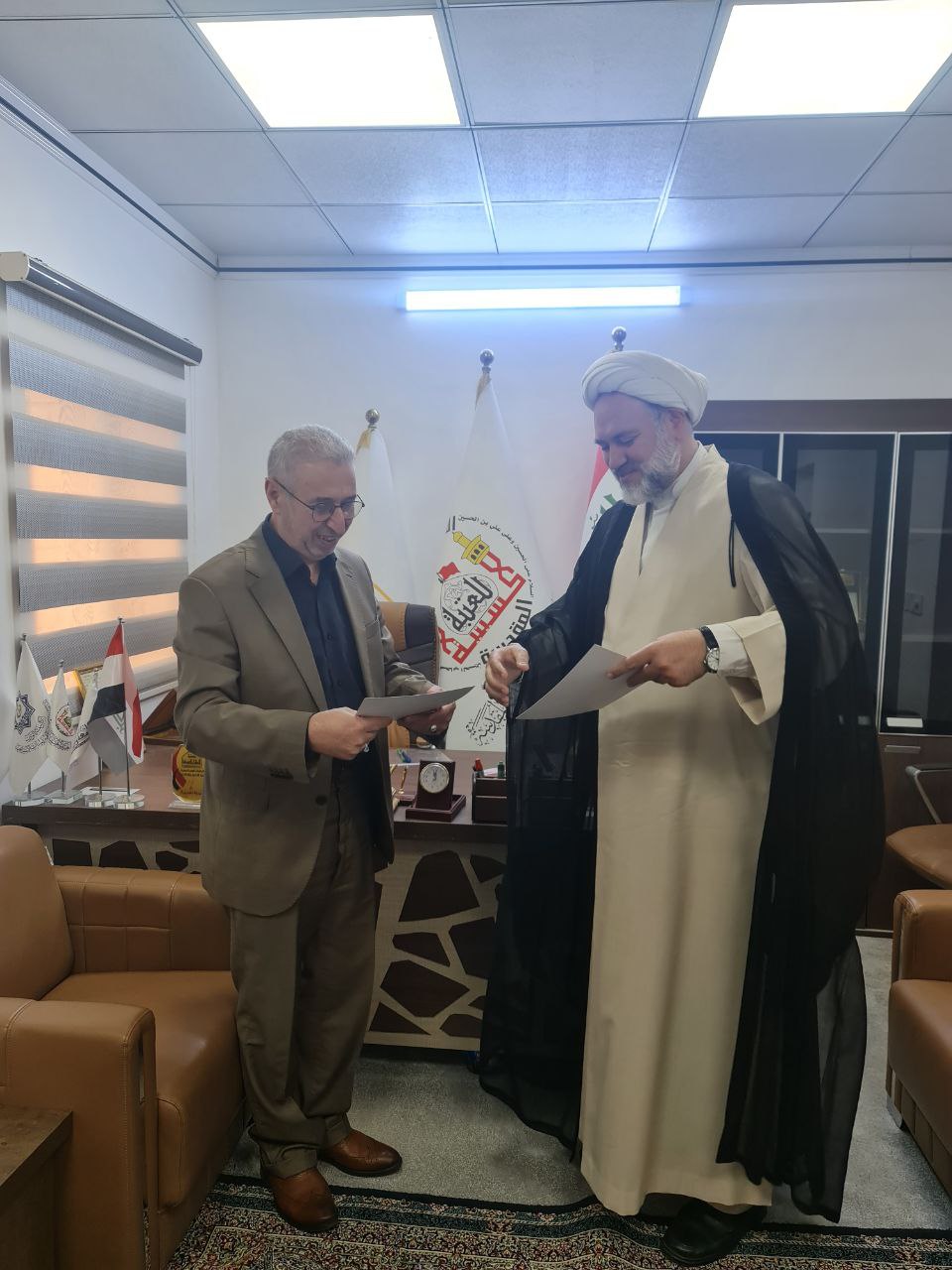 حضر التوقيع ممثل عن جامعة المصطفى العالمية، إلى جانب السيد عميد الكلية الدكتور طلال فائق الكمالي، الذي أشرف على هذا الحدث الهام.