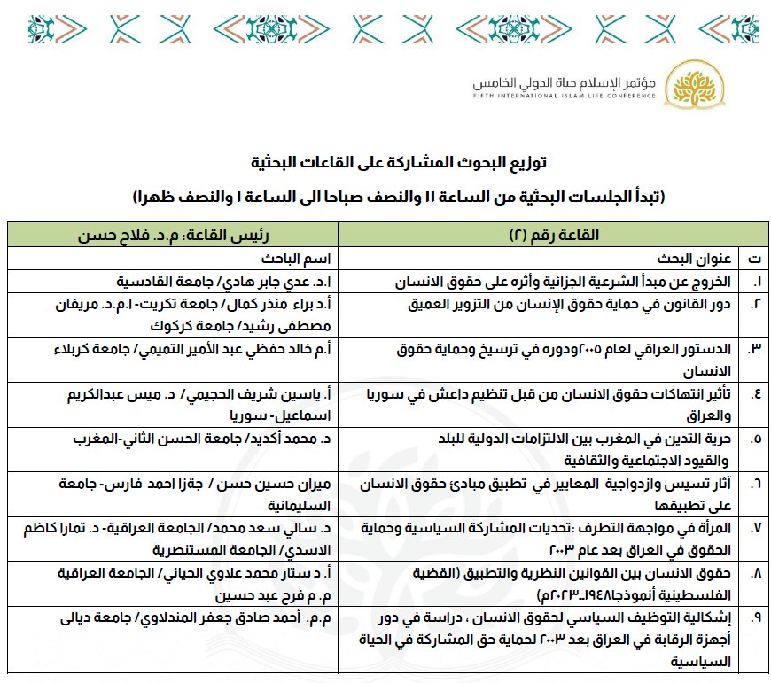وترأس الجلسات البحثية في المؤتمر نخبة من الأكاديميين البارزين، من بينهم:- أ.د. إياد كريم