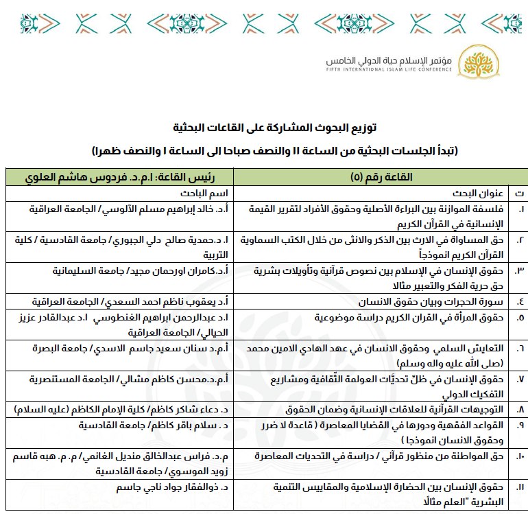 أبحاث المؤتمر العلمي الخامس "الإسلام حياة" الموسوم بـ "حقوق الإنسان والتحديات المعاصرة"