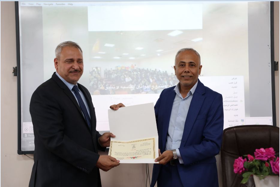 اقامة كلية القانون بتاريخ(13/4/2019) يوم العلم حيث جرى مراسيم الاحتفال بحضور (السيد افضل الشامي )وممثل رئيس الجامعة وجرى تكريم الطلبة الاوائل على الدراسة الصباحية والمسائية للمرحلتين الاولى والثانية بهدايا وكتب شكر كما جرى تكريم الاساتذة .