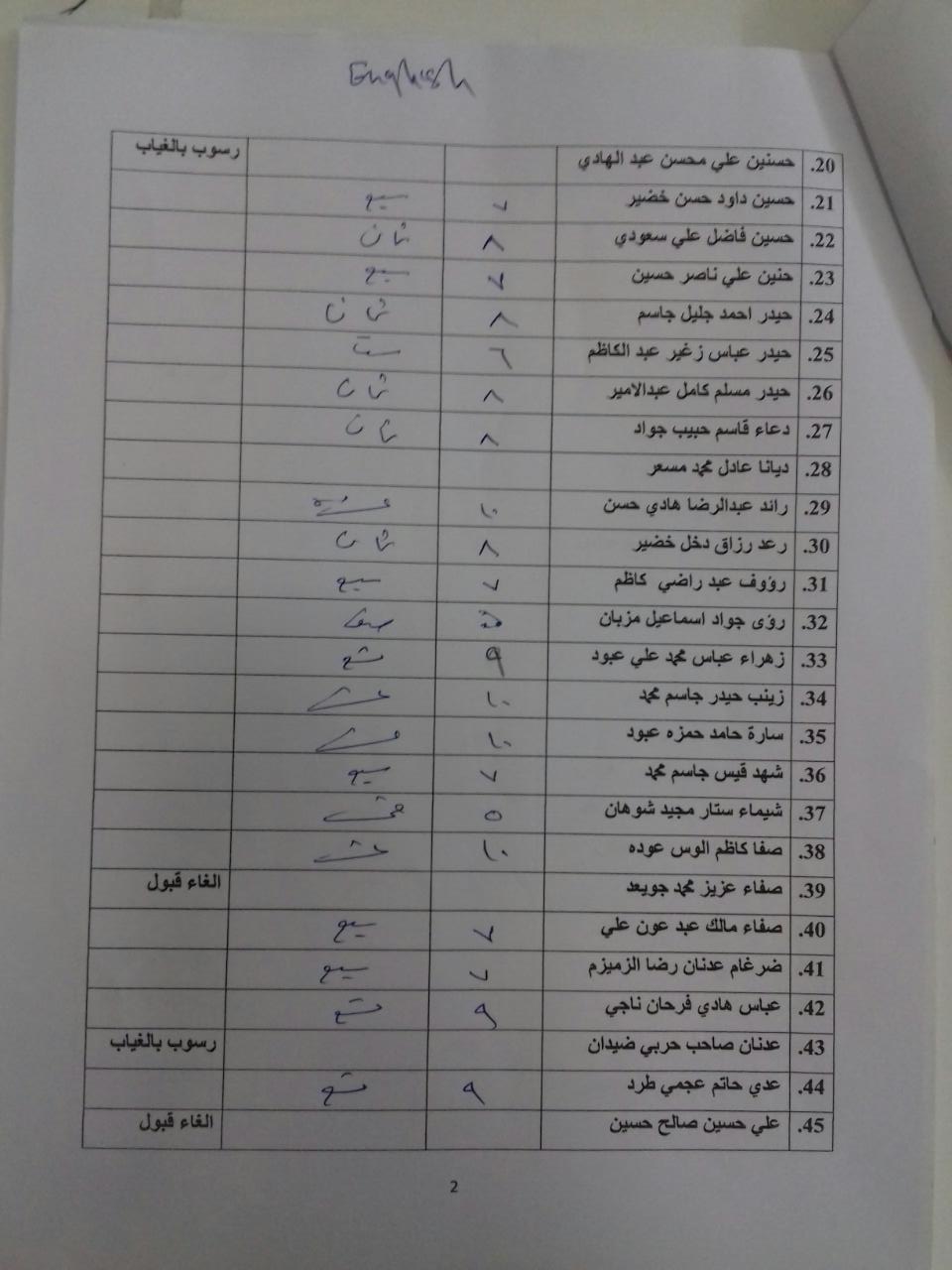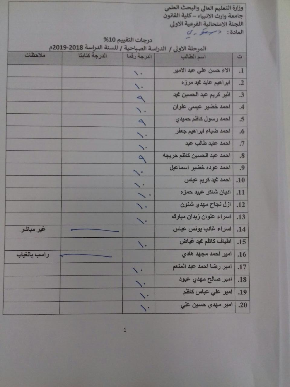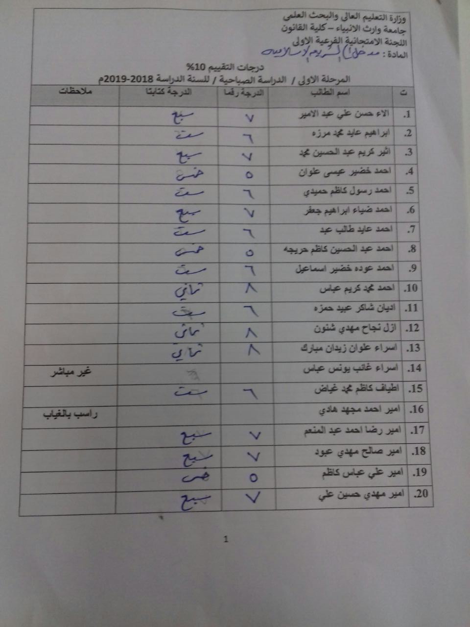 درجات الشفوي (المرحلة الاولى)