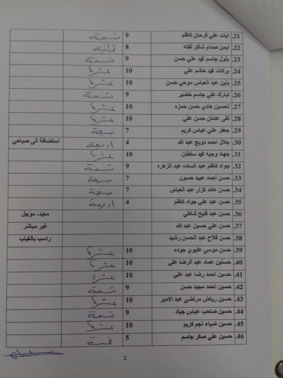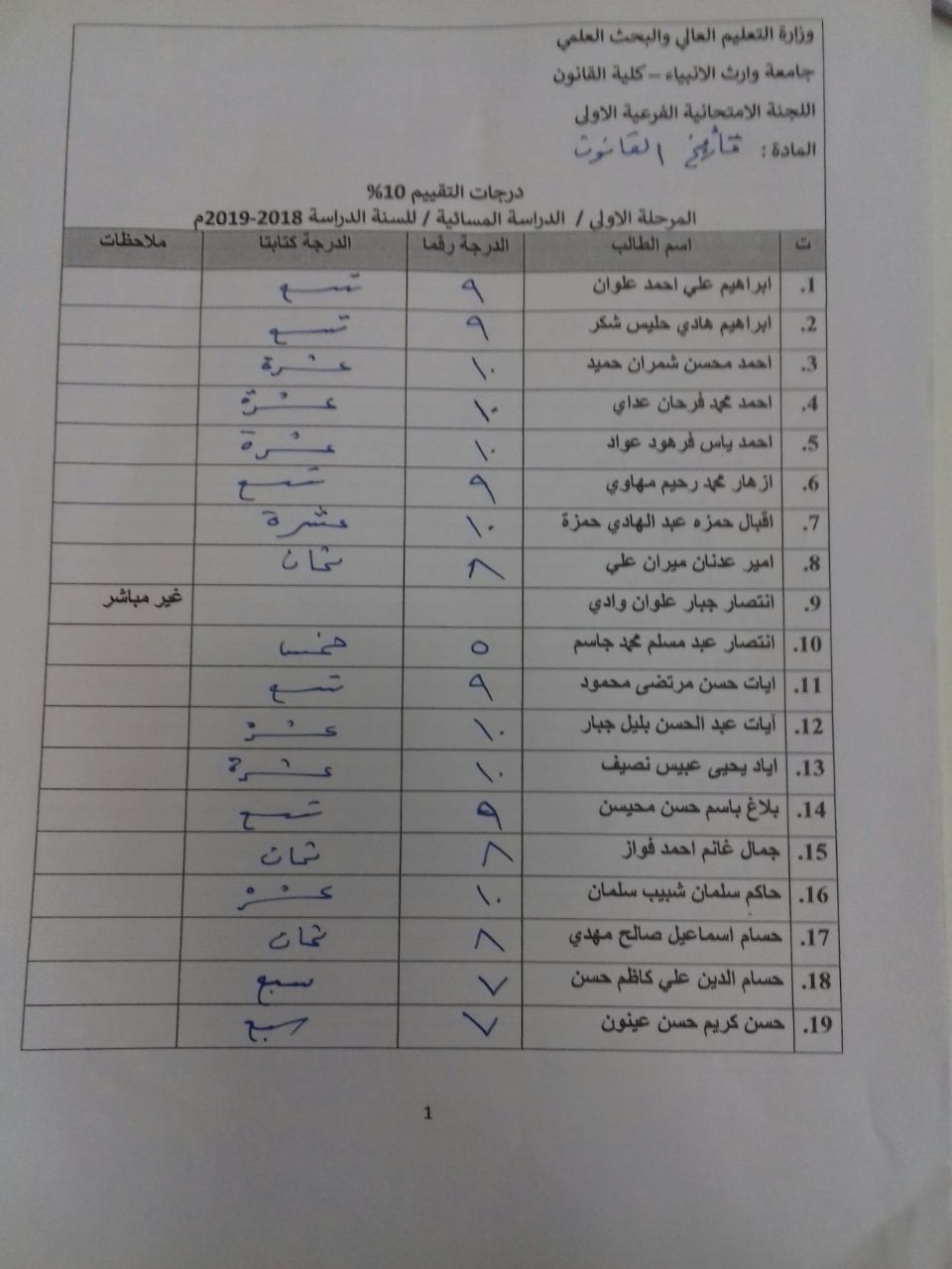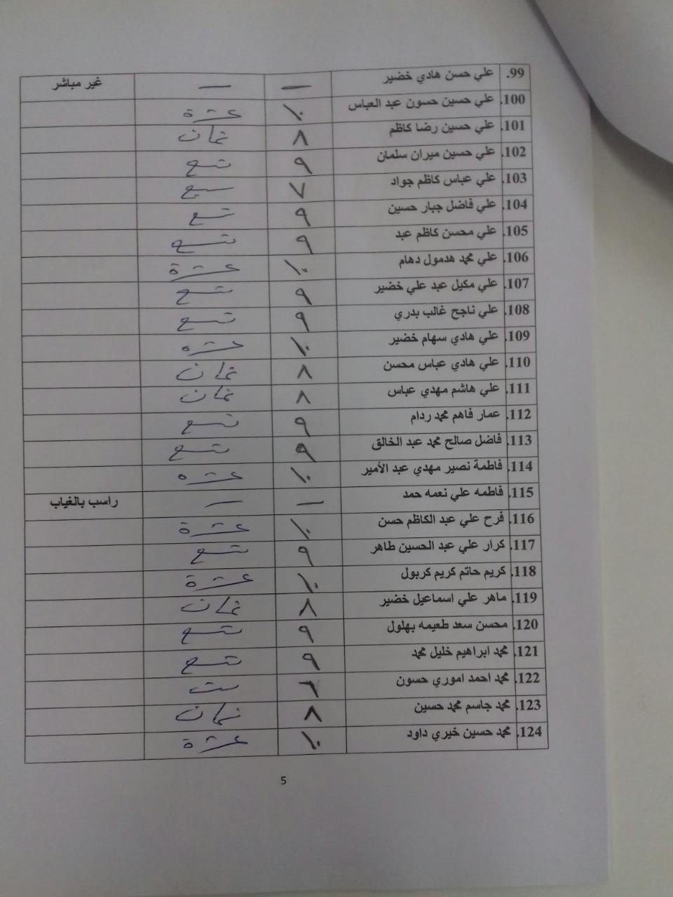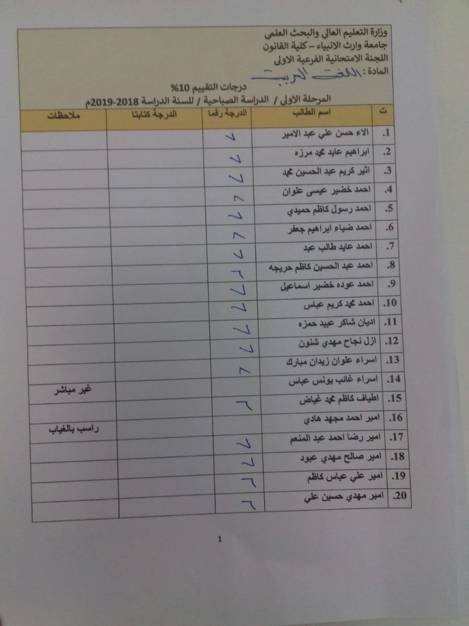 درجات الشفوي (المرحلة الاولى)