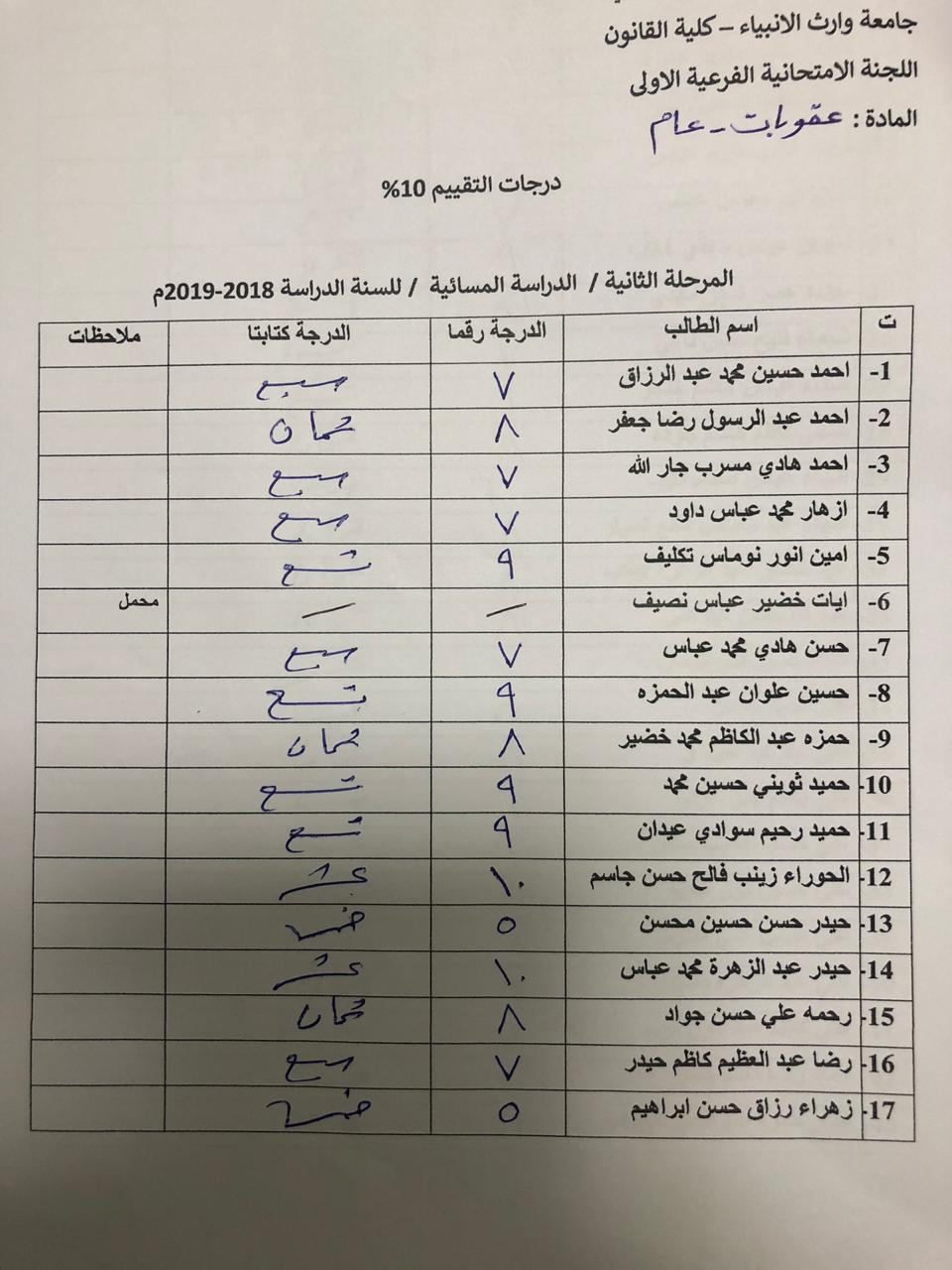 إجراء الامتحان المشترك لتعزيز الرصانة العلمية في قسم العلوم المالية والمصرفية الاسلامي كلية العلوم الاسلامية