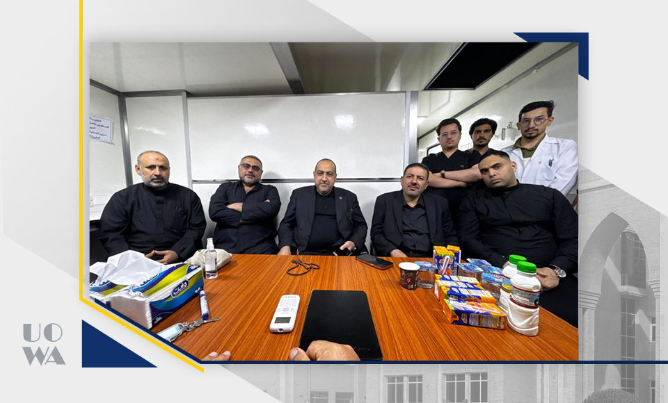 في خضم الأجواء الروحية السامية للزيارة الاربعينية الخالدة تتقدم عمادة كلية الطب جامعة وارث الأنبياء ع بأسمى عبارات التقدير والفخر والاحترام الى طلبتنا الاعزاء المشاركين في مفارز الخدمة الطبية المنتشرة على جميع طرق الزائرين لما بذلوه من جهد ووقت وخبرة في تطبيب ومعالجة وتخفيف الم الزائرين الكرام والذي لم يكن ليحصل لولا أن تتوفر لدى هؤلاء الثلة الطيبة من بناتنا وأبناءنا الرغبة والعلم والمهارة التي مكنتهم من أداء هذه المهمة العظيمة. أن التقيمات التي وردتنا من قبل الأطباء المشرفين على عمل طلبتنا المتطوعين كانت رائعة جدا ومحط اعتزاز وفخر لنا جميعاً ، حيث أشار جميع المشرفين إلى الانضباط العالي الذي اتصف به طلابنا الاعزاء اضافة إلى امتلاكهم الامكانية العلمية والمهارة السريرية التي تؤهلهم للعمل في كل الأوقات وتحت أقسى الظروف وهذا بلا شك يعكس جهد اساتذة الكلية في تدريب وتطوير المهارات النظرية والعملية والسريرية لطلبتنا الاعزاء وهذا ما كان ليتحقق لولا الدعم المتواصل والاشراف المستمر من قبل السيد رئيس الجامعة المحترم.