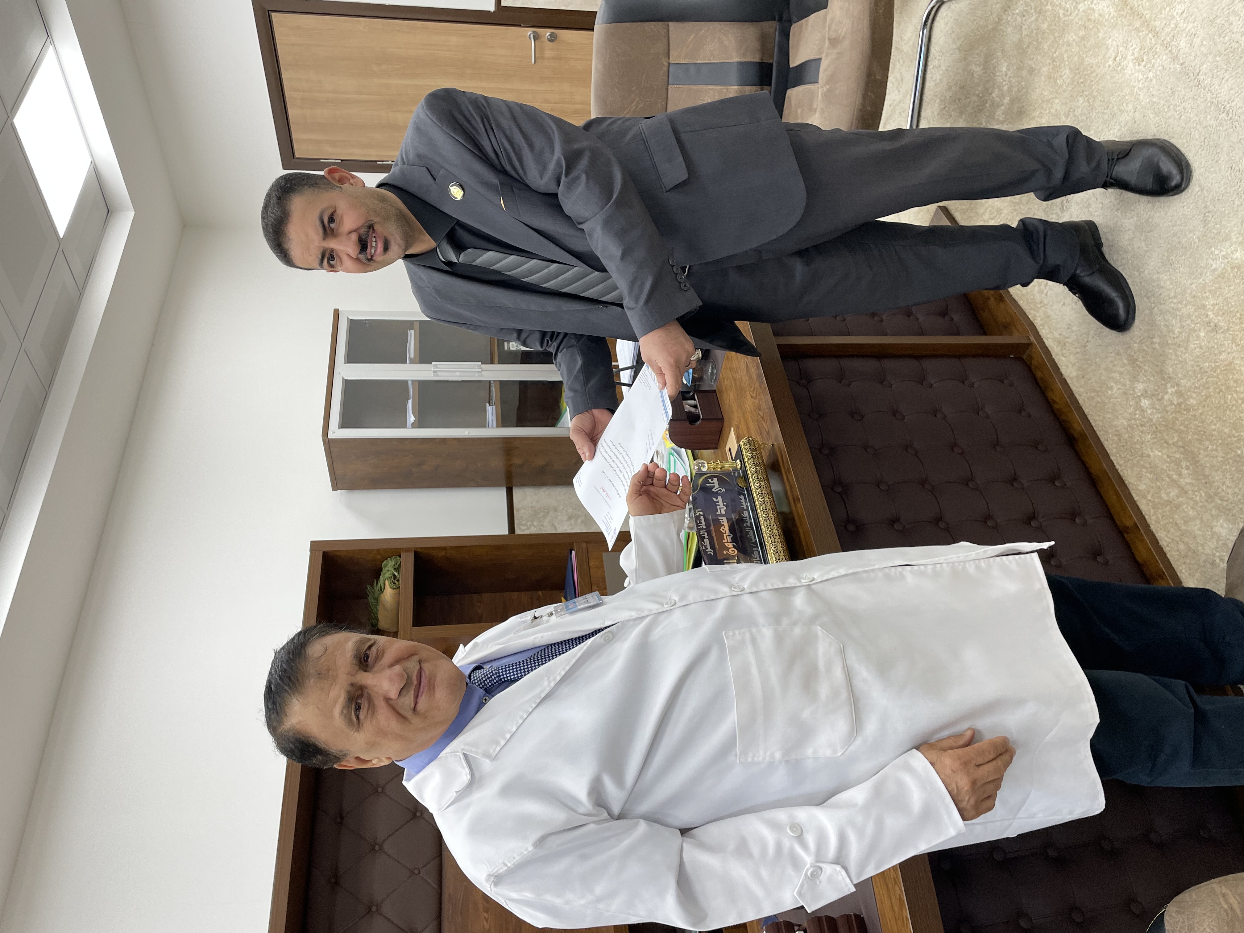 السيد عميد كلية الطب المحترم الاستاذ الدكتور علي عبد سعدون يكرم الاستاذ الدكتور عامر عمران على جهوده المبذولة خلال الدورات التدريبية التي اقيمت الى الطلبة خلال العطلة الصيفية