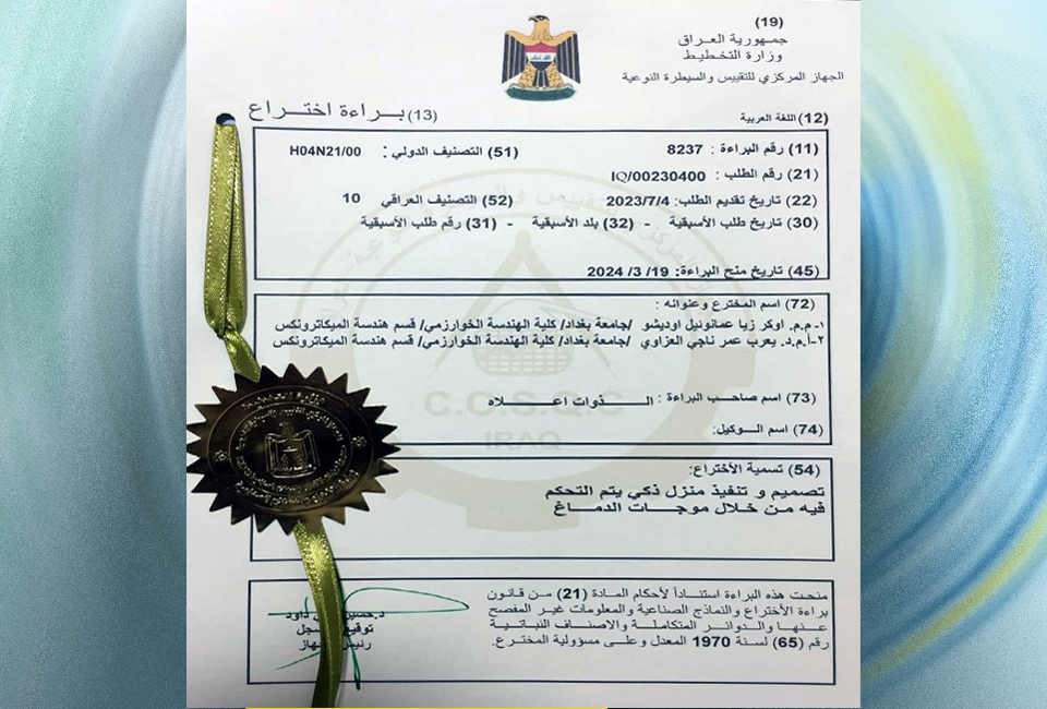 حصلت جامعة بغداد على براءة اختراع لتصميم وتنفيذ منزل ذكي يمكن التحكم فيه من خلال موجات الدماغ.