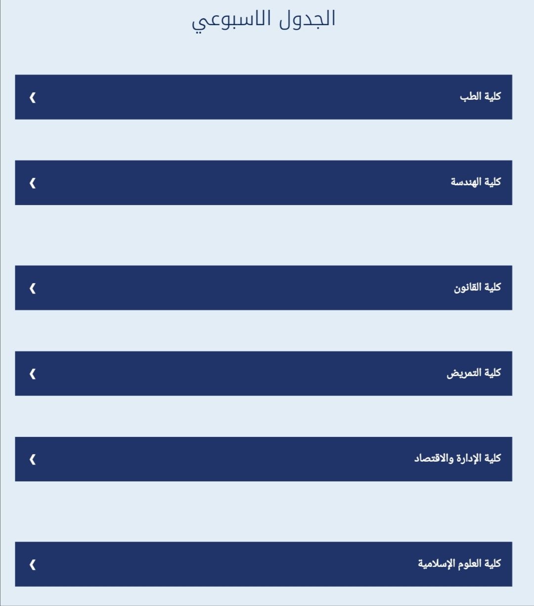 جدول الدروس الاسبوعي لقسم الفقه واصوله