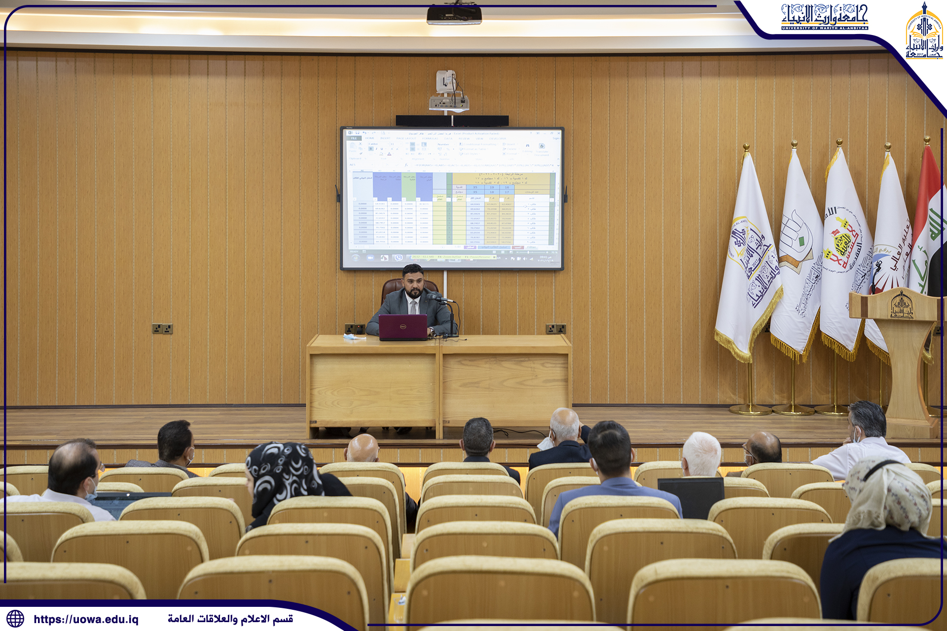 برعاية السيد رئيس الجامعة المحترم وبأشراف السيد مساعد رئيس الجامعة للشؤون العلمية المحترم اقام قسم الشؤون العلمية في جامعة وارث الانبياء ع وبالتعاون مع كلية التمريض ندوة علمية بعنوان كيفية احتساب المعدل التراكمي لطلبة المراحل المنتهية القاها التدريسي في كلية التمريض/ جامعة الكوفة المدرس ظافر امين الموسوي وكانت الندوة بحضور السيد رئيس قسم الشؤون العلمية الاستاذ الدكتور حاكم سماوي والسيد عميد كلية التمريض الاستاذ المساعد الدكتور مرتضى غانم الجبوري وعدد من السادة العمداء واعضاء اللجان الامتحانية ولجان احتساب المعدل التراكمي.