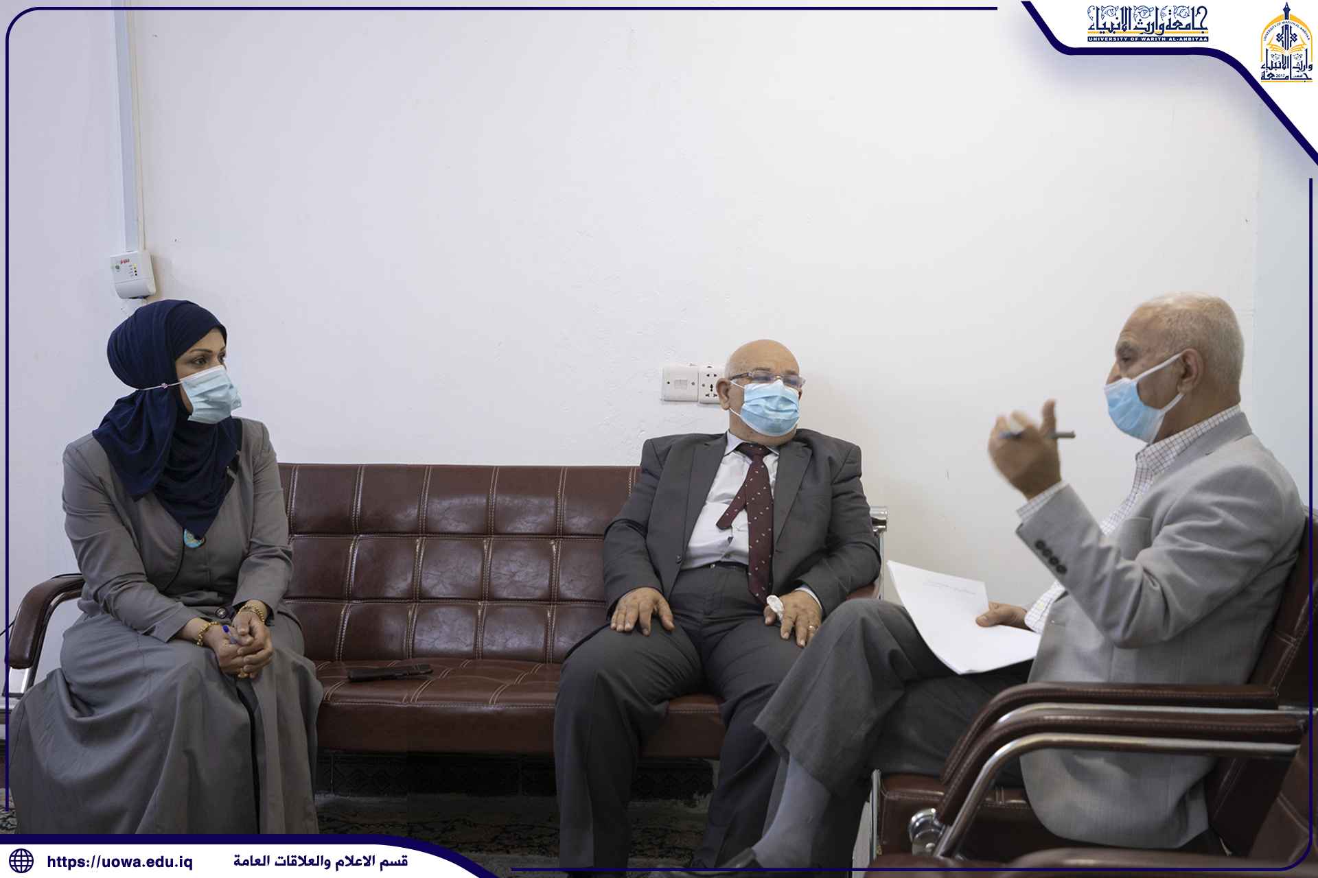 اجتمع السيد عميد كليه الادارة والاقتصاد جامعة وارث الأنبياء أ.د عواد كاظم الخالدي في يوم الإربعاء المصادف ٢٦/٥/٢٠٢١ بالكادر التدريسي للكلية وبحضور رئيس قسم الادارة م.د فهد الشمري ؛ ورئيس قسم المحاسبة م.د هبة الله مصطفى .