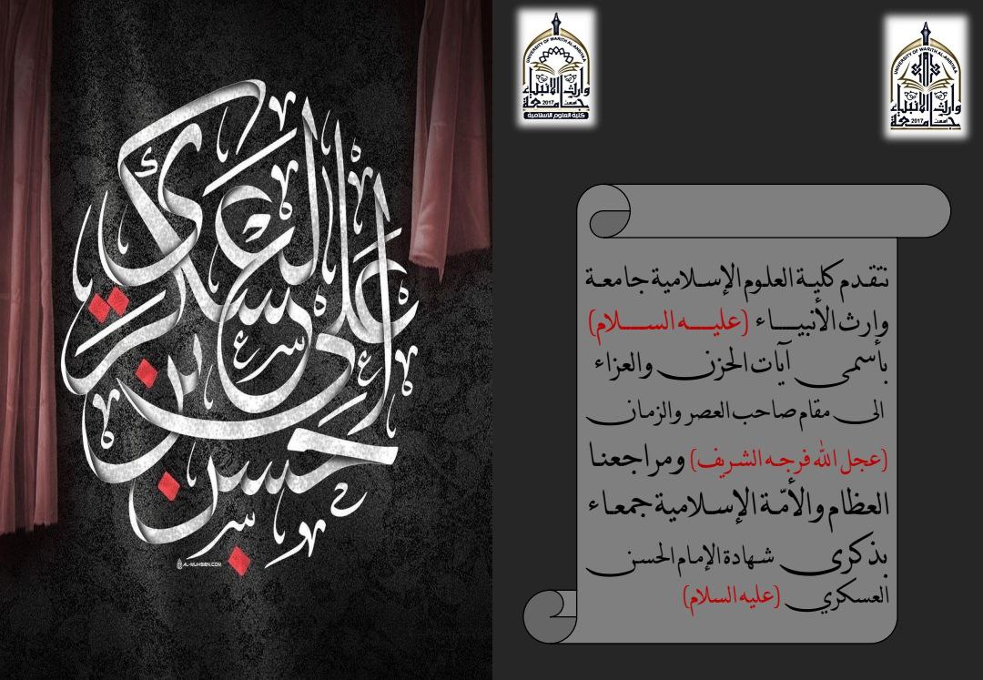 تعازي كلية العلوم الاسلامية بشهادة الامام الحسن العسكري (عليه السلام)