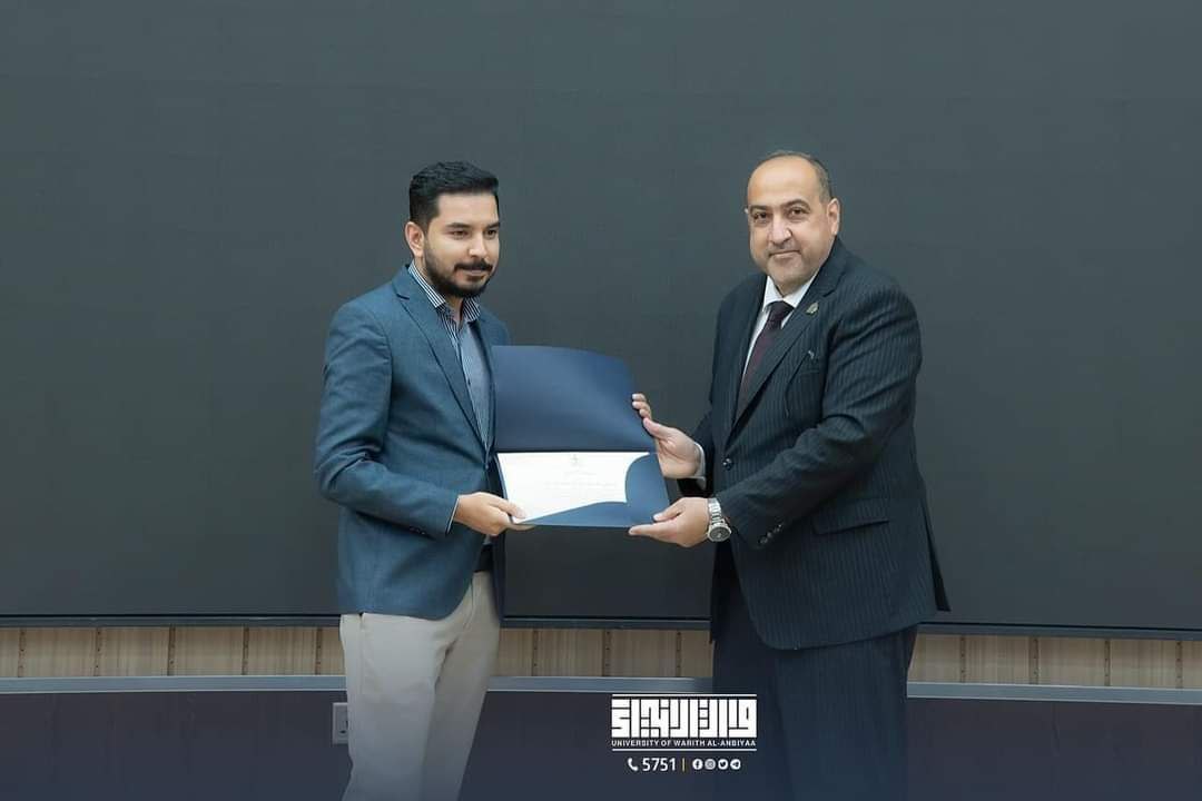 كرّم السيد عميد كلية العلوم الإسلامية بجامعة وارث الأنبياء، الدكتور طلال الكمالي، الأستاذ مرتضى محمد علي، يوم السبت 21/9/2024، بمناسبة حصوله على اللقب العلمي.