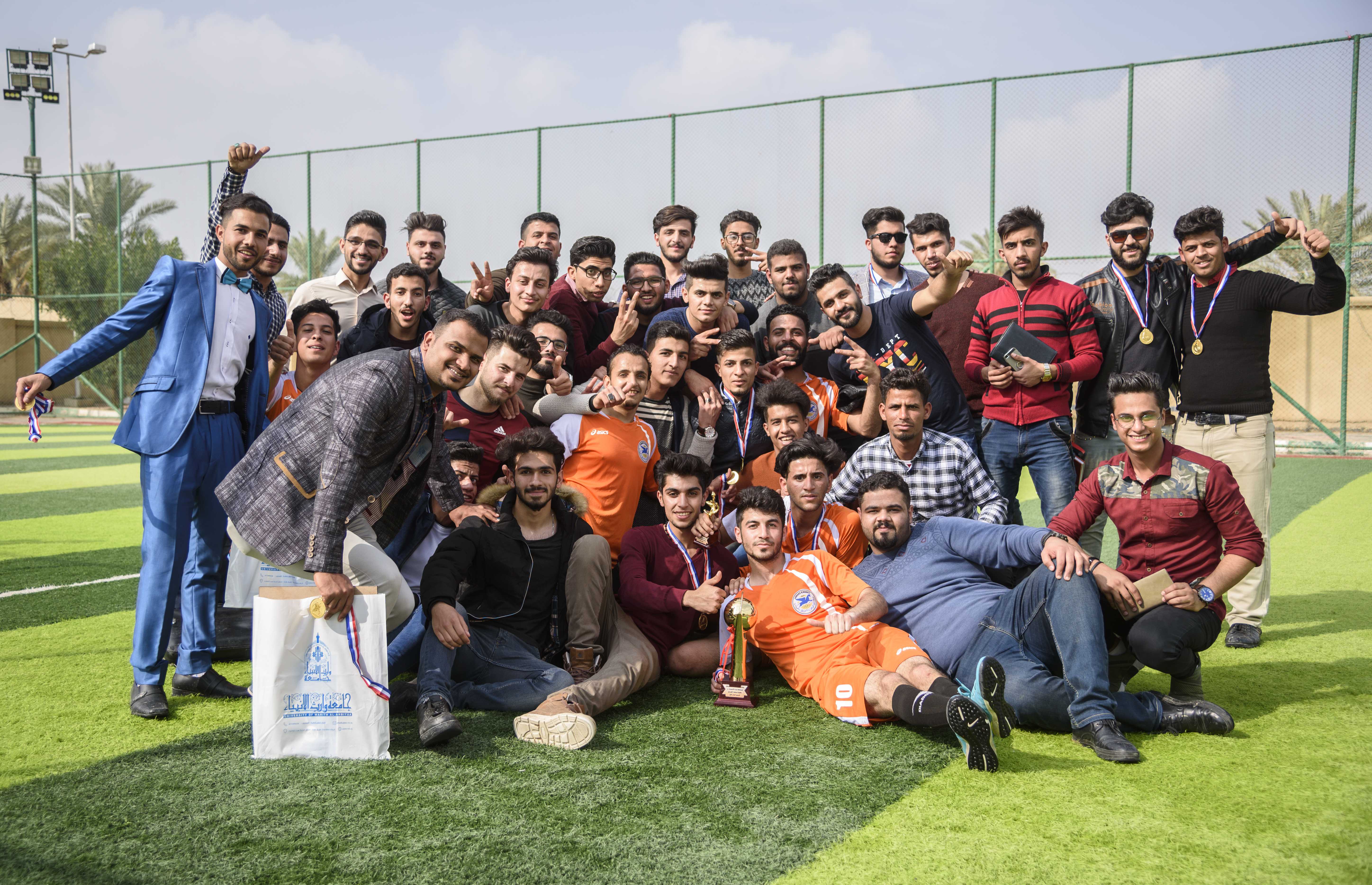 اختتم قسم النشاطات الطلابية في جامعة وارث الانبياء(عليه السلام) بطولة تشرين الكروية الخاصة بالأساتذة والموظفين، حيث كانت انطلاقة المباراة النهائية بقراءة سورة الفاتحة ترحماً على ارواح الشهداء الذين سقطوا في ساحات التظاهر السلمية، وجرت المباراة النهائية بين فريق كلية العلوم الاسلامية وفريق بناية العُلى (الرئاسة) والتي انتهت بفوز فريق العلوم الاسلامية بركلات الترجيح، يذكر ان هذه البطولة الرياضية التي اقامها قسم النشاطات الطلابية في الجامعة كانت بالتعاون مع مركز رعاية الشباب التابع للعتبة الحسينية المقدسة.