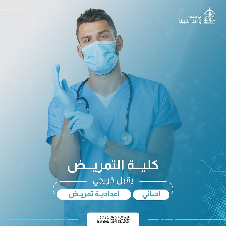 بالصور زيارة السيد عميد كلية التمريض أ.د. مرتضى غانم الجبوري الى مؤسسة وارث الدوليه للاورام حيث التقى بـخريجي كلية التمريض العاملين في مؤسسة وارث واستمع السيد العميد الى طلاباتهم وكانت هناك اتفاقية لتدريب الطلبة ووضع اليات وخطط للنهوض بالواقع العلمي وتأهيل طلبة كلية التمريض ليصبحو ممرضين محترفين خدمتا للصالح العام الطلبة الاعزاء الراغبين بالتقديم على الكليه اليكم مميزات كلية التمريض 🔸التعيين للطلبة الاوائل على (الكلية واقسامها)في مؤسسات العتبة الحسينية المقدسة. 🔸️الاولوية لخريجي جامعة وارث الانبياء (عليه السلام) بالتعيين في مؤسسات العتبة الحسينية المقدسة