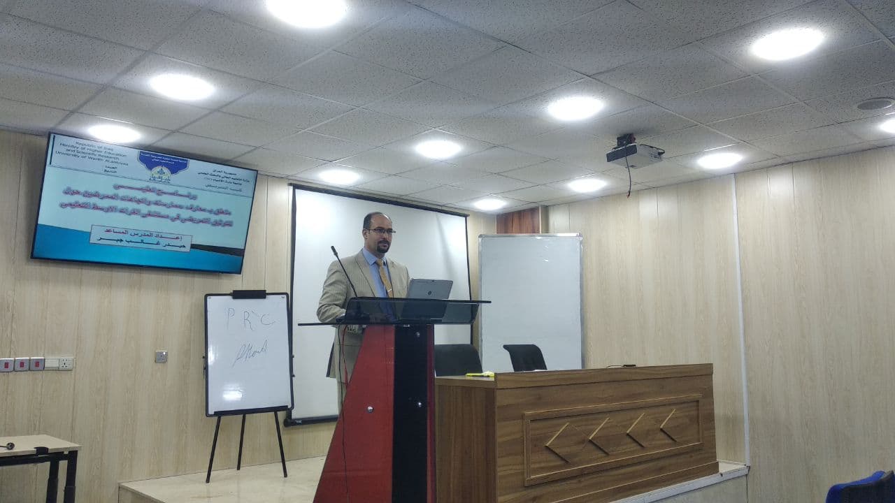 أقام المدرب الدولي المعتمد والتدريسي في كلية التمريض المدرس المساعد حيدر غالب الابراهيمي برنامج تعليمي حول معارف وممارسات واتجاهات الملاكات التمريضية فيما يتعلق بالتوثيق التمريضي