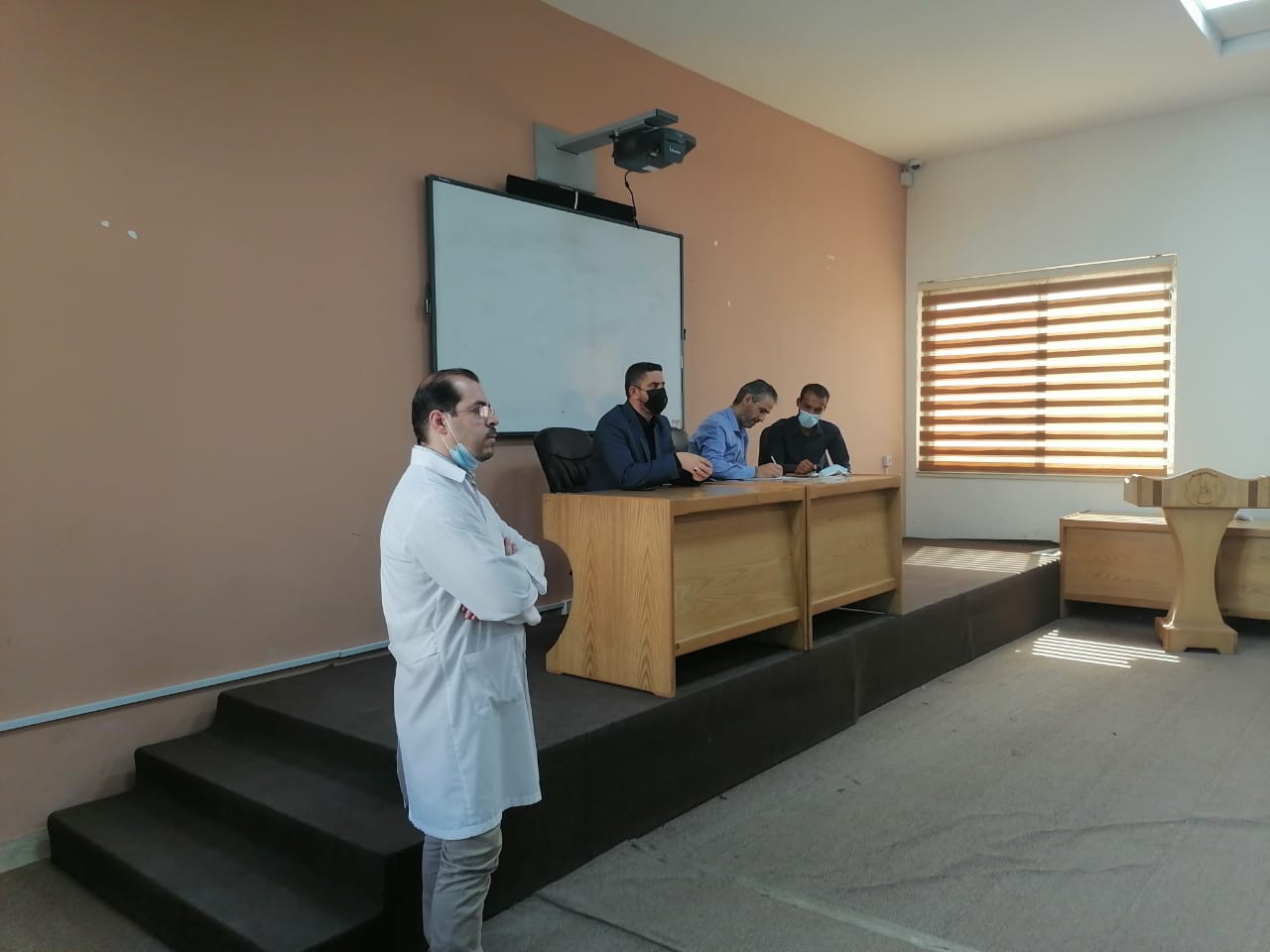 برئاسة السيد عميد كلية التمريض الاستاذ المساعد الدكتور مرتضى غانم الجبوري وعضوية لجنة مناقشة مشاريع التخرج لطلبة كلية التمريض والمؤلفة من أ.م.د نسيم صقر و م.د رهف عقل وم.د حسين المفرجي شرعت اللجنة بمناقشة الطلبة من الذين اكملو متطلبات اكمال البحث