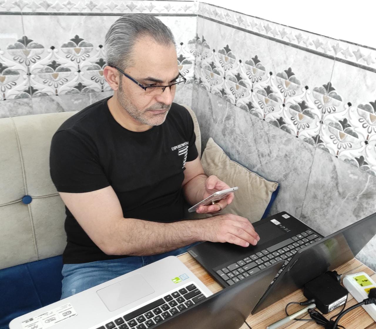 يتابع السيد العميد المحترم سير الامتحانات الالكترونية النهائية للفصل الدراسي الاول بجانب الاساتذة المراقبين واللجنة الالكترونية في داخل الكلية .