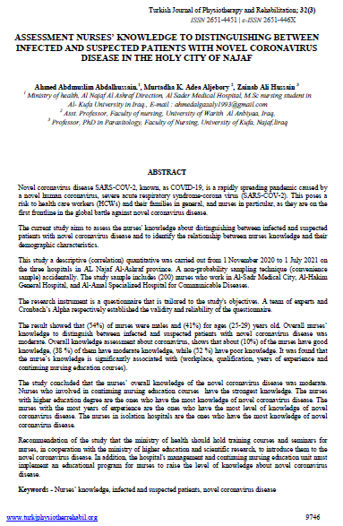 نشر الاستاذ المساعد الدكتور مرتضى غانم الجبوري عميد كلية التمريض بحثاً علمياً في مجلة العلاج الطبيعي والتأهيل الطبي التركيه والتي هي من ضمن مستوعبات سكوب
